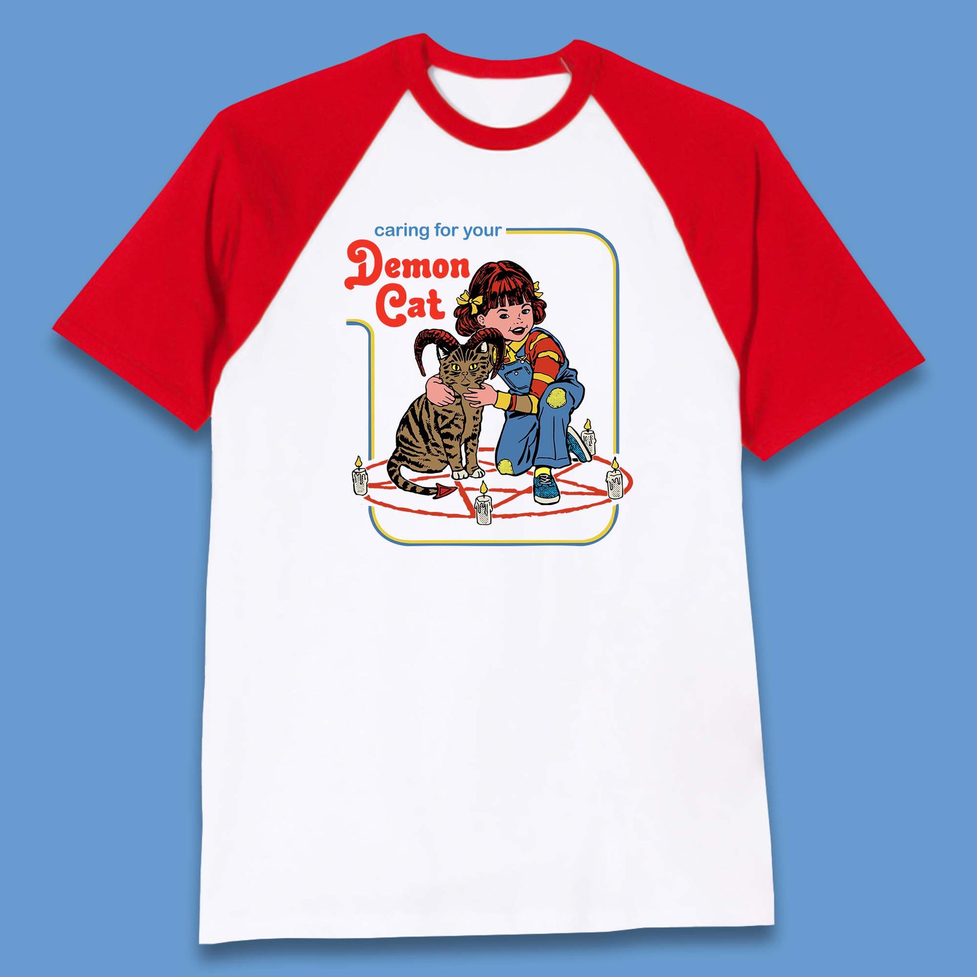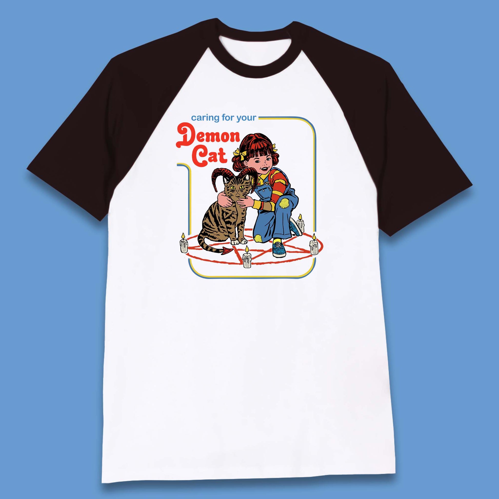 Caring For Your Demon Cat Creepy Incantation Halloween Aesthetic Cat Baseball T Shirt
