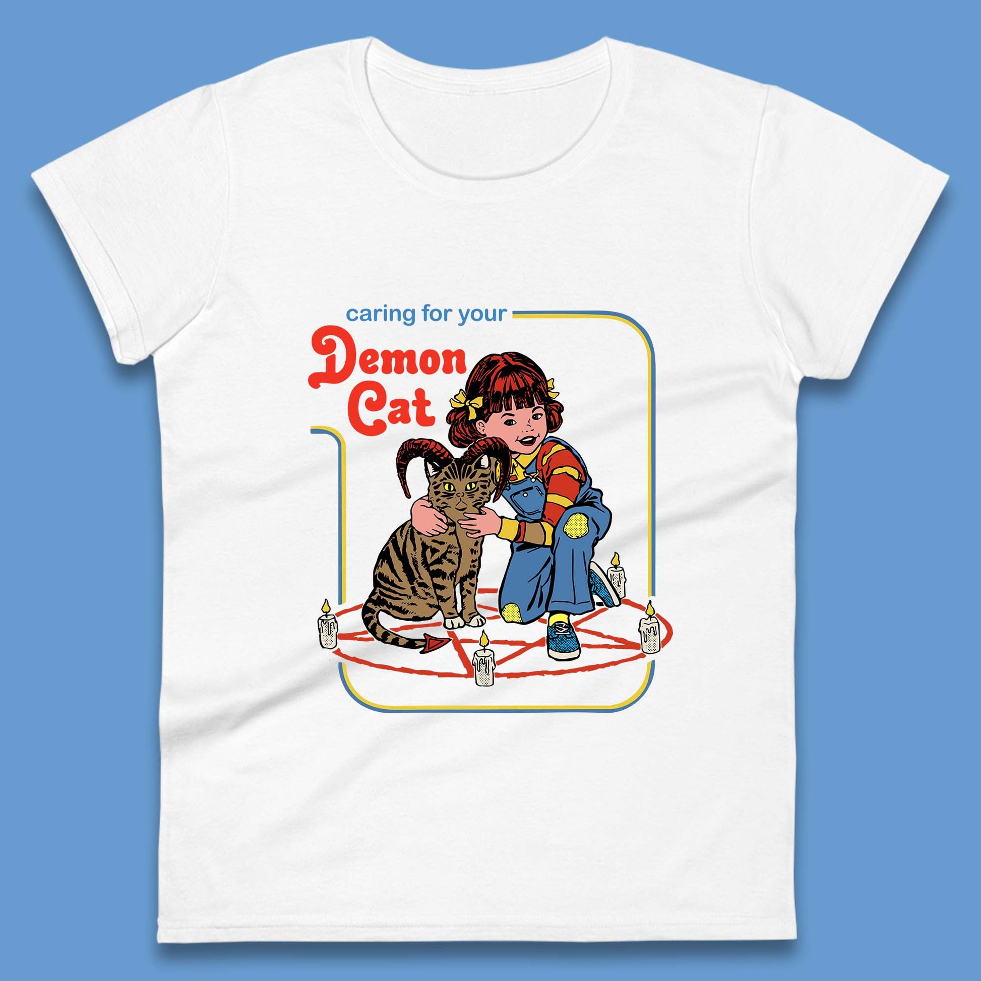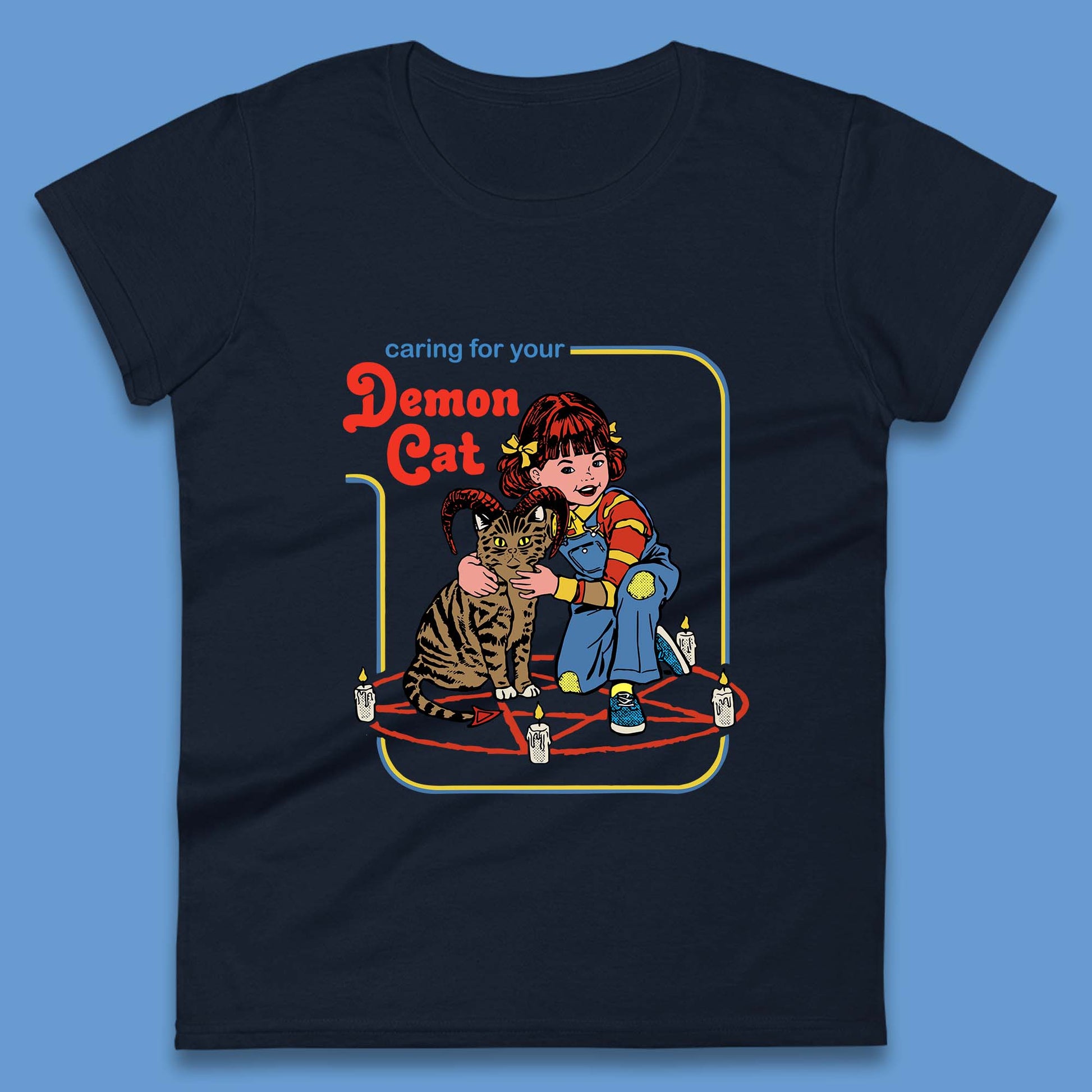 Caring For Your Demon Cat Creepy Incantation Halloween Aesthetic Cat Womens Tee Top