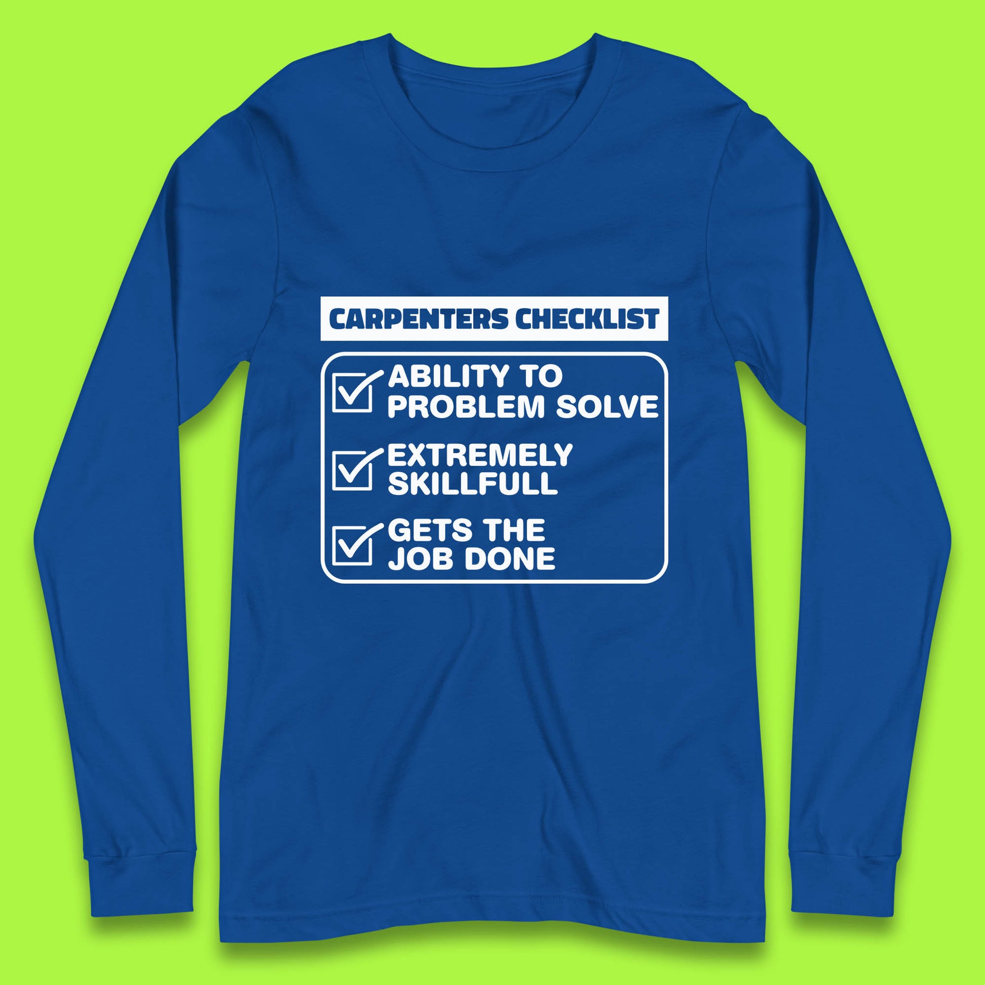 Carpenters Checklist Funny Woodworking Carpenter Hardworking Carpentry Woodworker Long Sleeve T Shirt