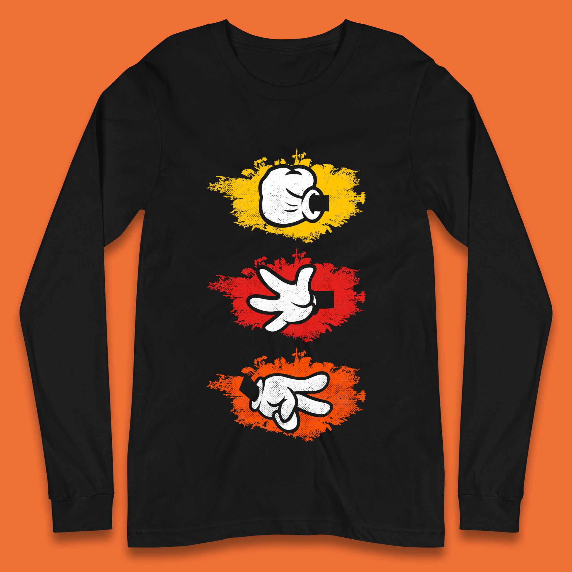 Cartoon Hands Rock Paper Scissor Hand Game Disney Mickey Mouse Minnie Mouse Hands Long Sleeve T Shirt