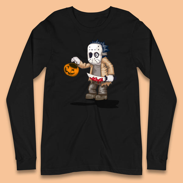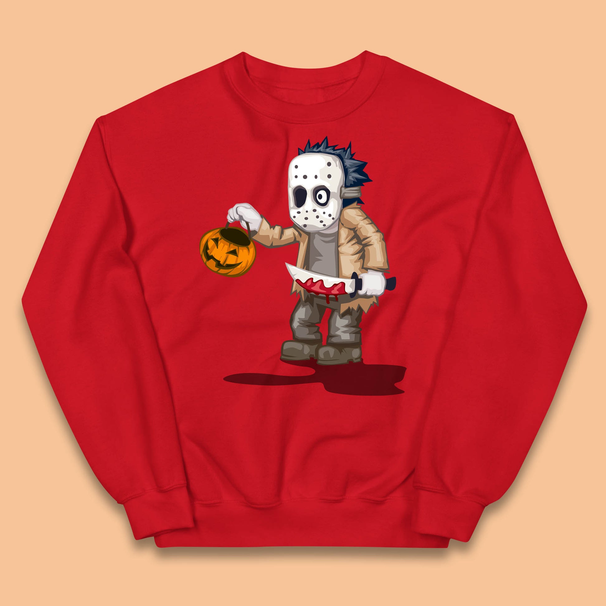 Chibi Jason Voorhees Holding Bloody Knife And Pumpkin Bucket Halloween Friday The 13th Horror Movie Kids Jumper