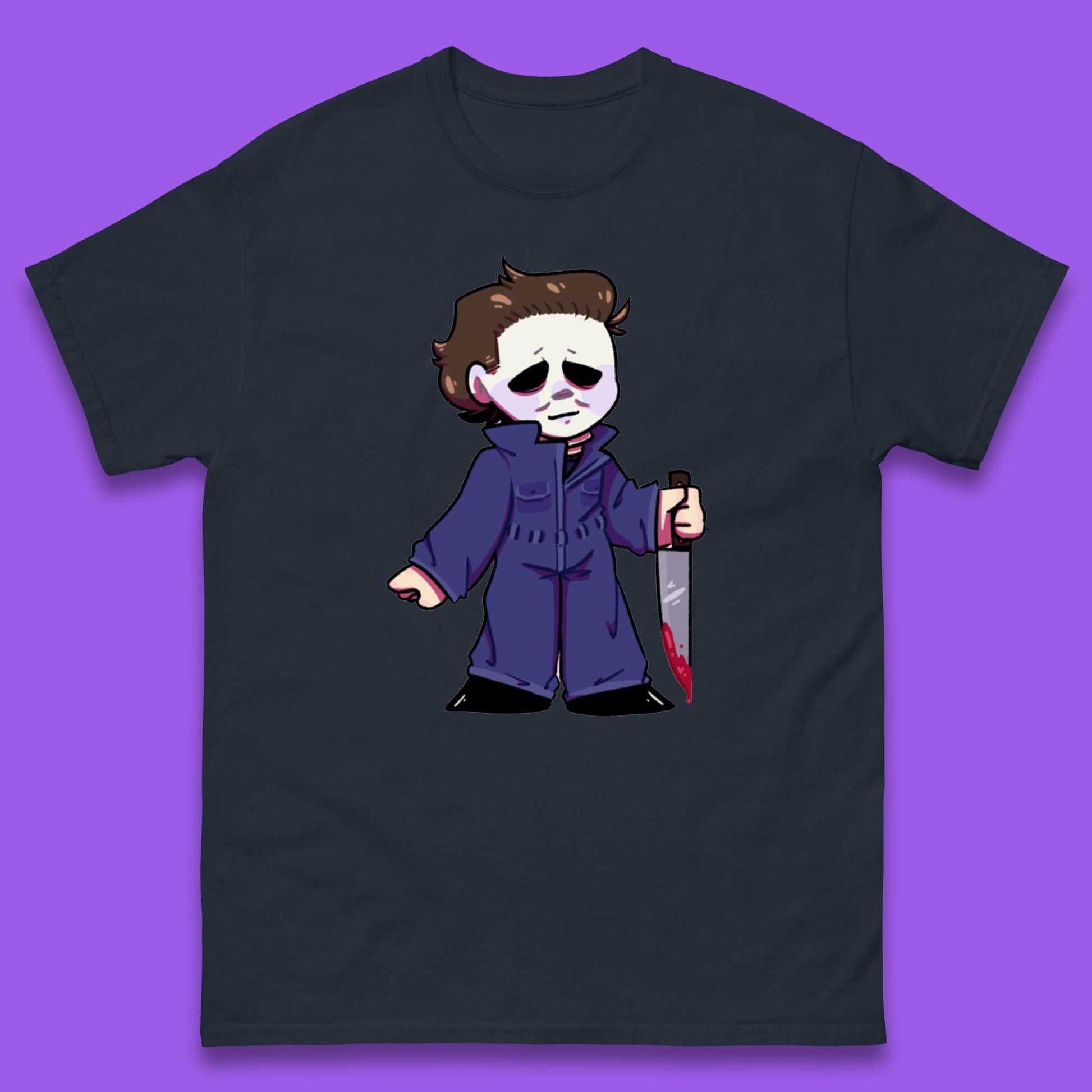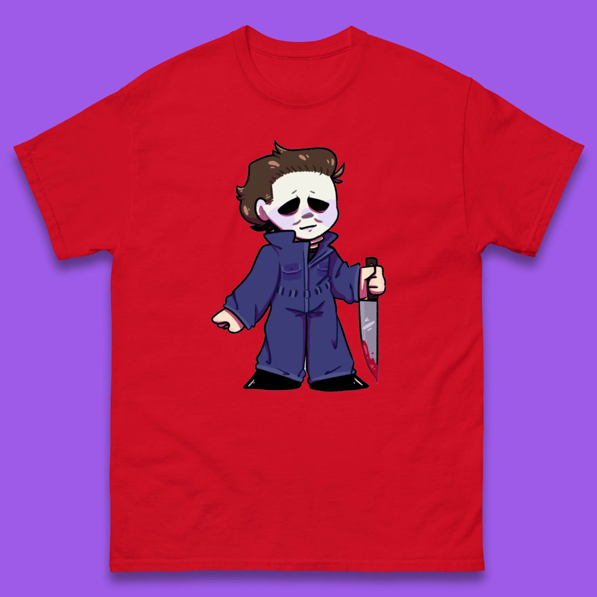 Chibi Michael Myers Holding Bloody Knife Halloween Serial Killer Horror Movie Character Mens Tee Top