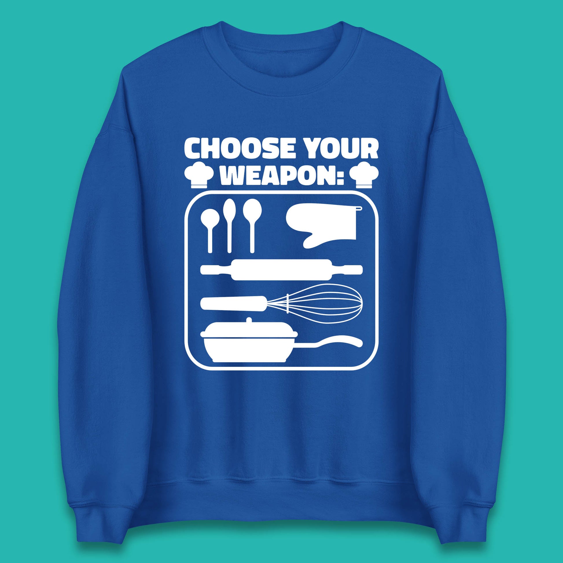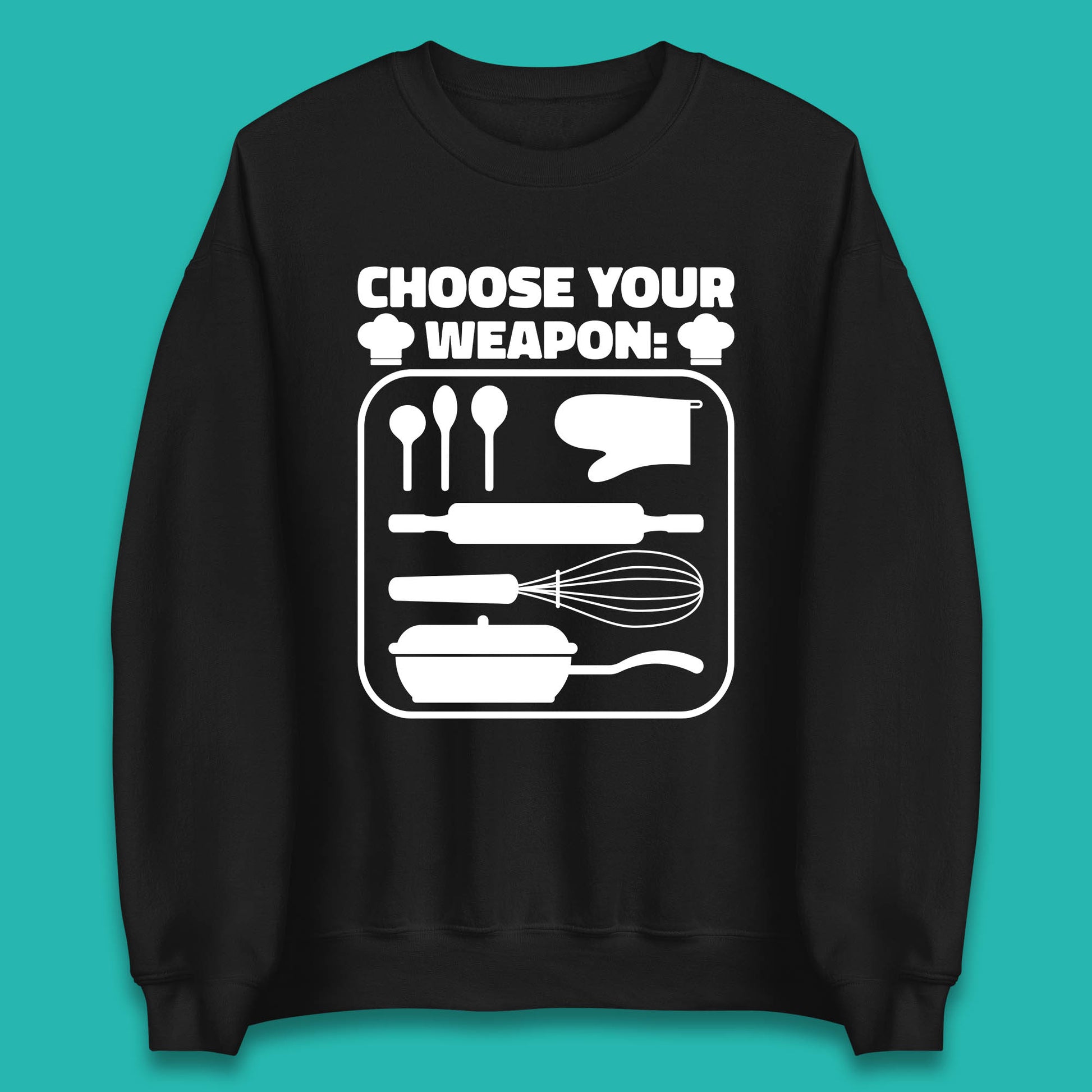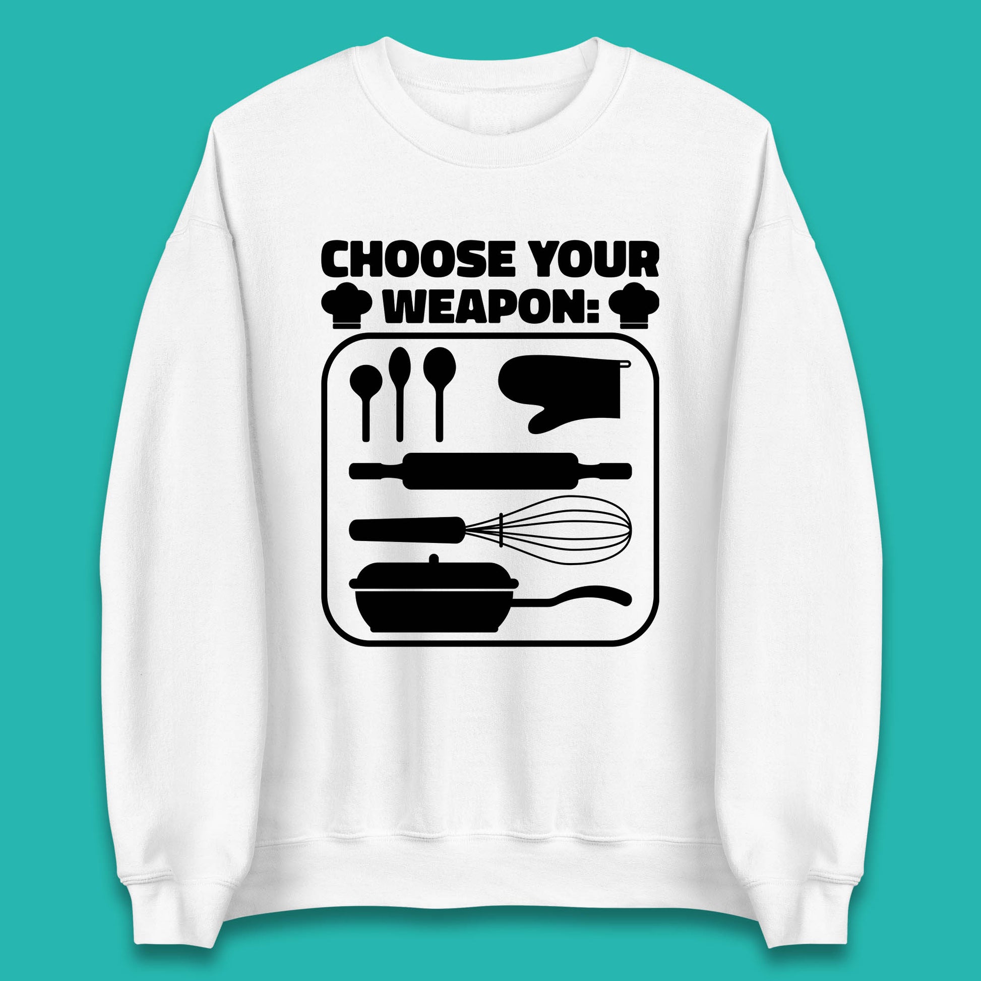 Choose Your Weapon Chef Funny Cooking Kitchen Baking Weapons Unisex Sweatshirt