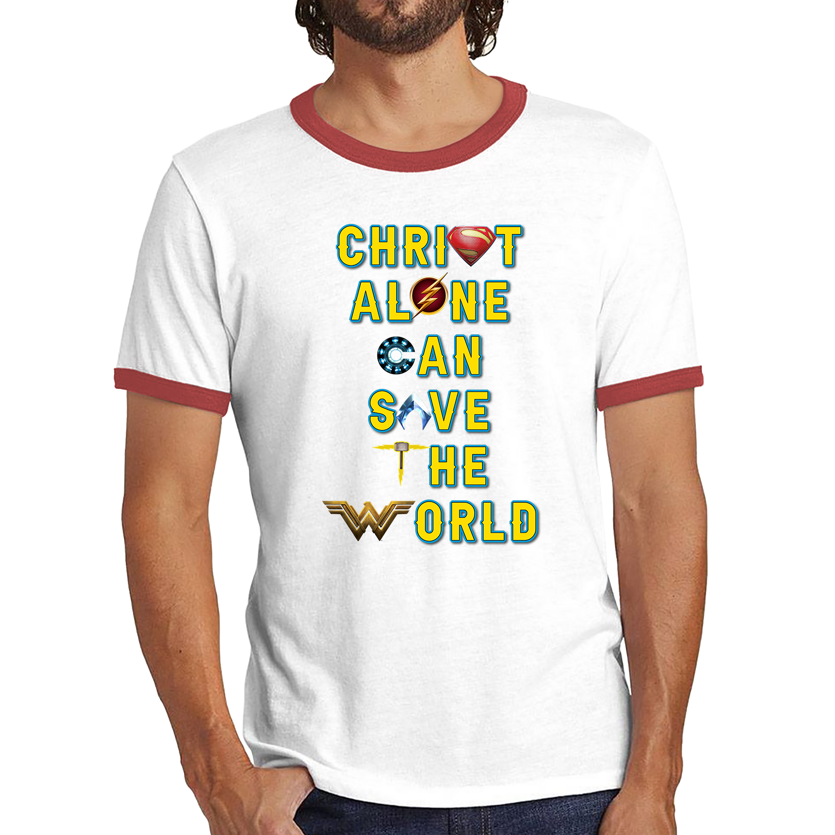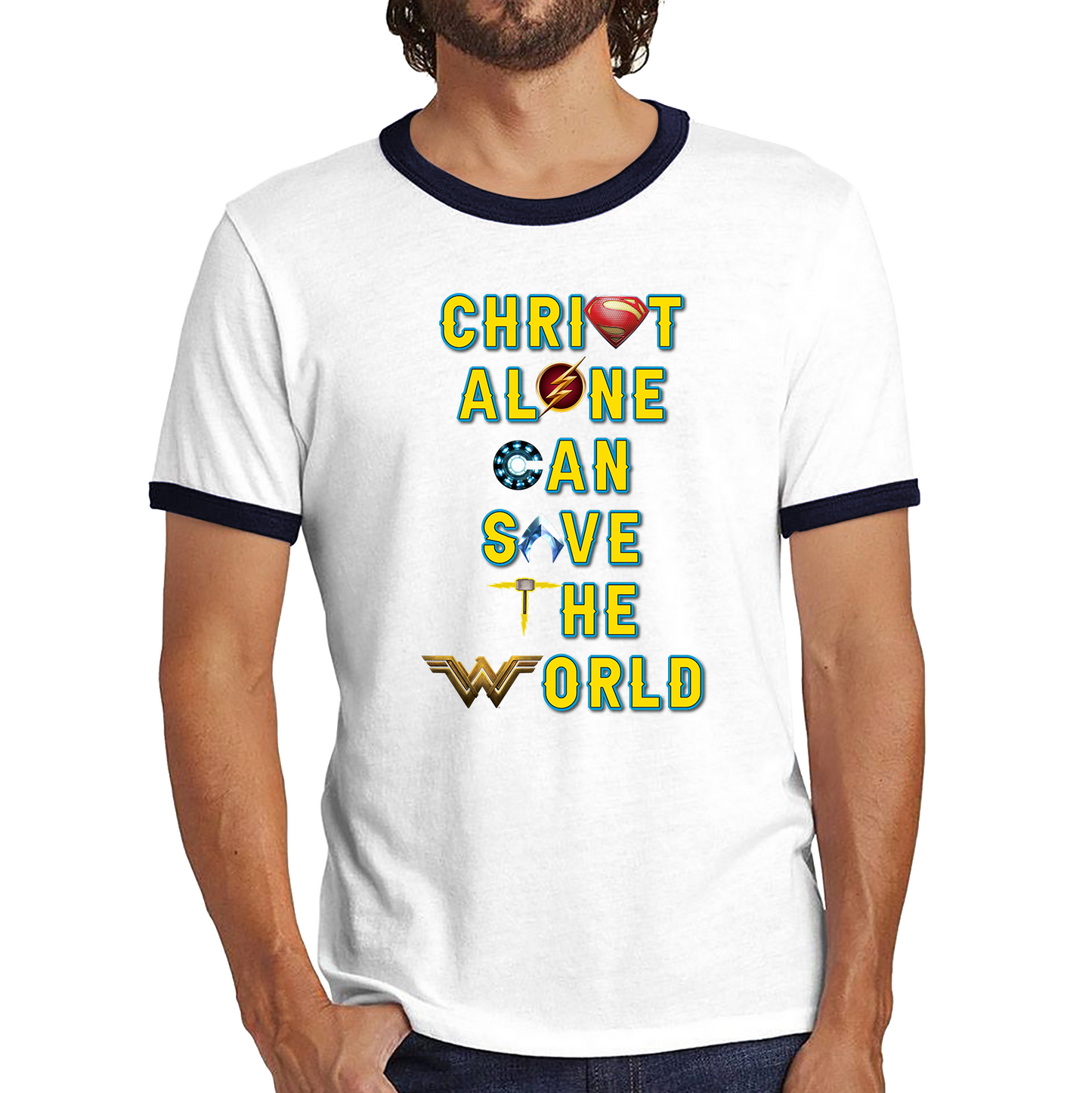 Christ Alone Can Save The World Shirt Avengers Superheroes Marvel Gift Ringer T Shirt
