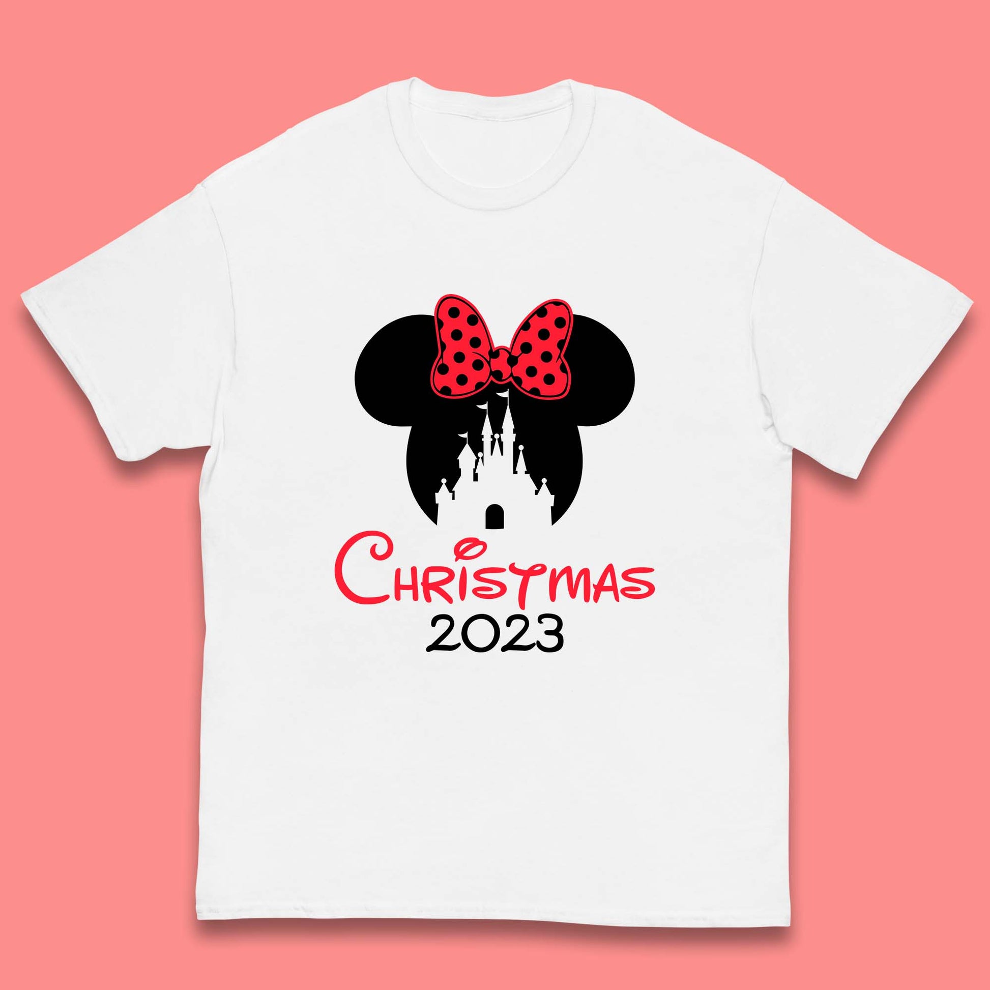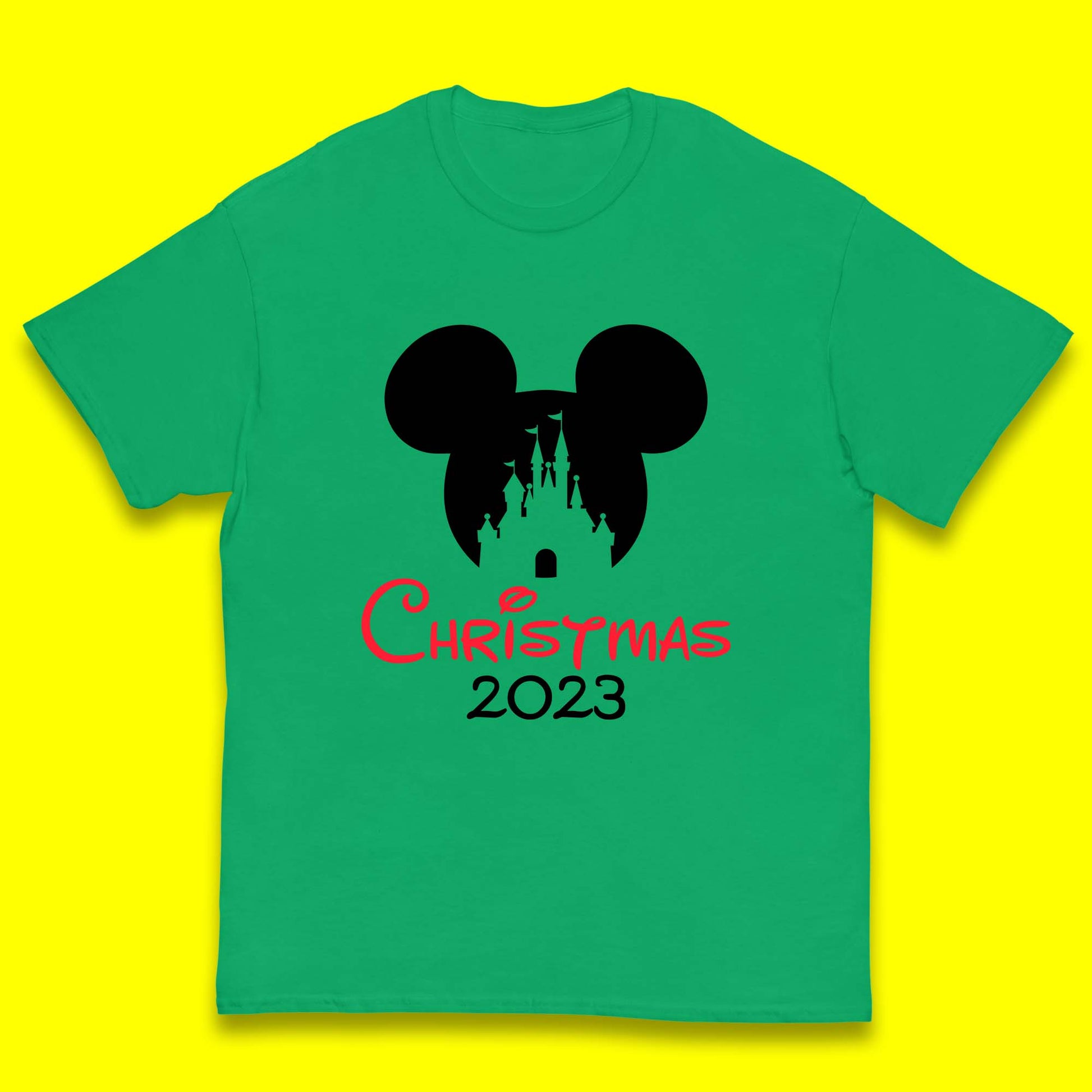 Christmas 2023 Mickey Mouse Minnie Mouse Magic Castle Holiday Xmas Disneyland Trip Kids T Shirt