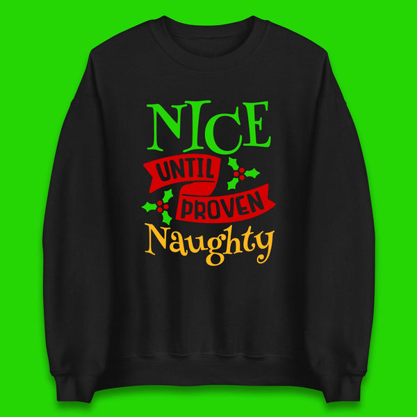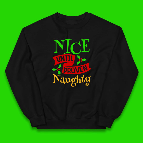 Add some playful holiday fun to your child's wardrobe with our Christmas Nice Until Proven Naughty Kids Hoodie! Featuring a cheeky "Nice Until Proven Naughty" design, this hoodie is perfect for kids who love to embrace the mischievous side of Christmas.