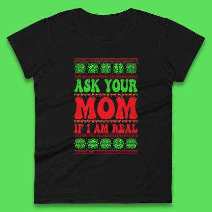 Ask Your Mom If I Am Real Christmas Santa Womens T Shirt