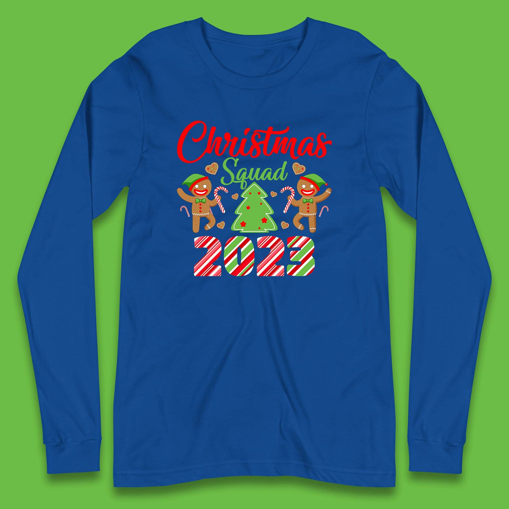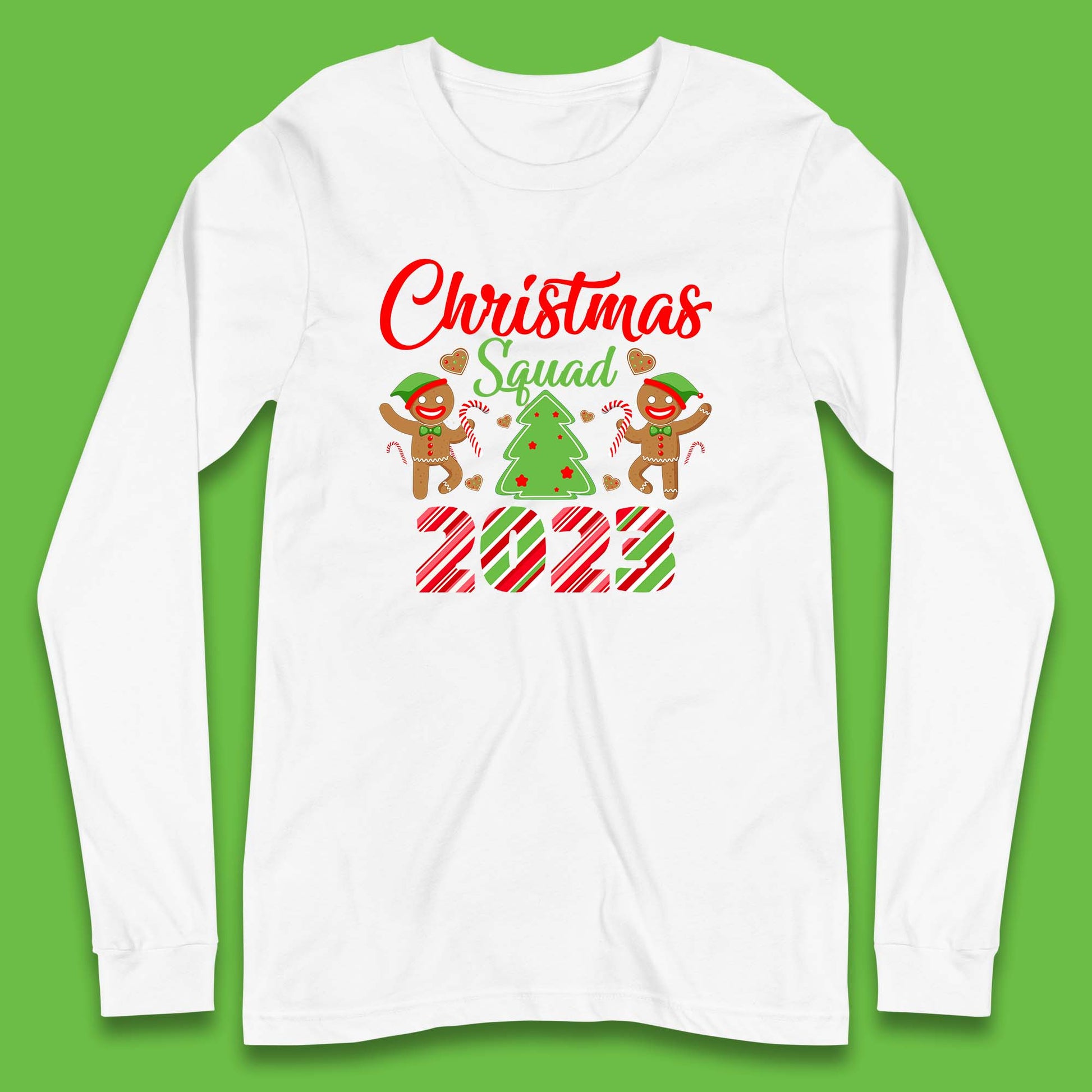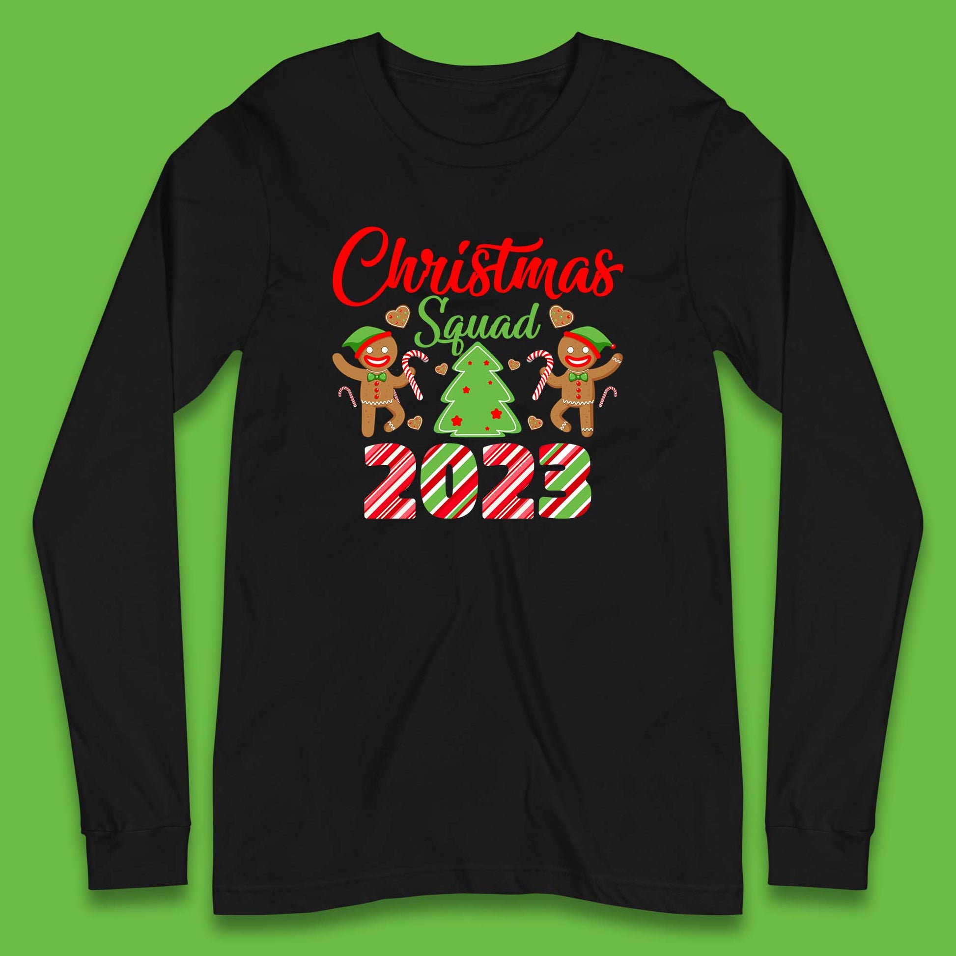 Christmas Squad 2023 Christmas Tree Xmas Gingerbread Man with Candy Cane Long Sleeve T Shirt