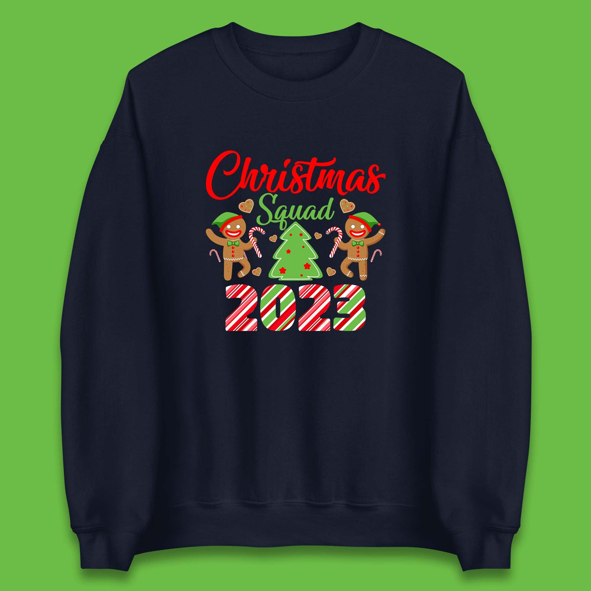 Christmas Squad 2023 Christmas Tree Xmas Gingerbread Man with Candy Cane Unisex Sweatshirt