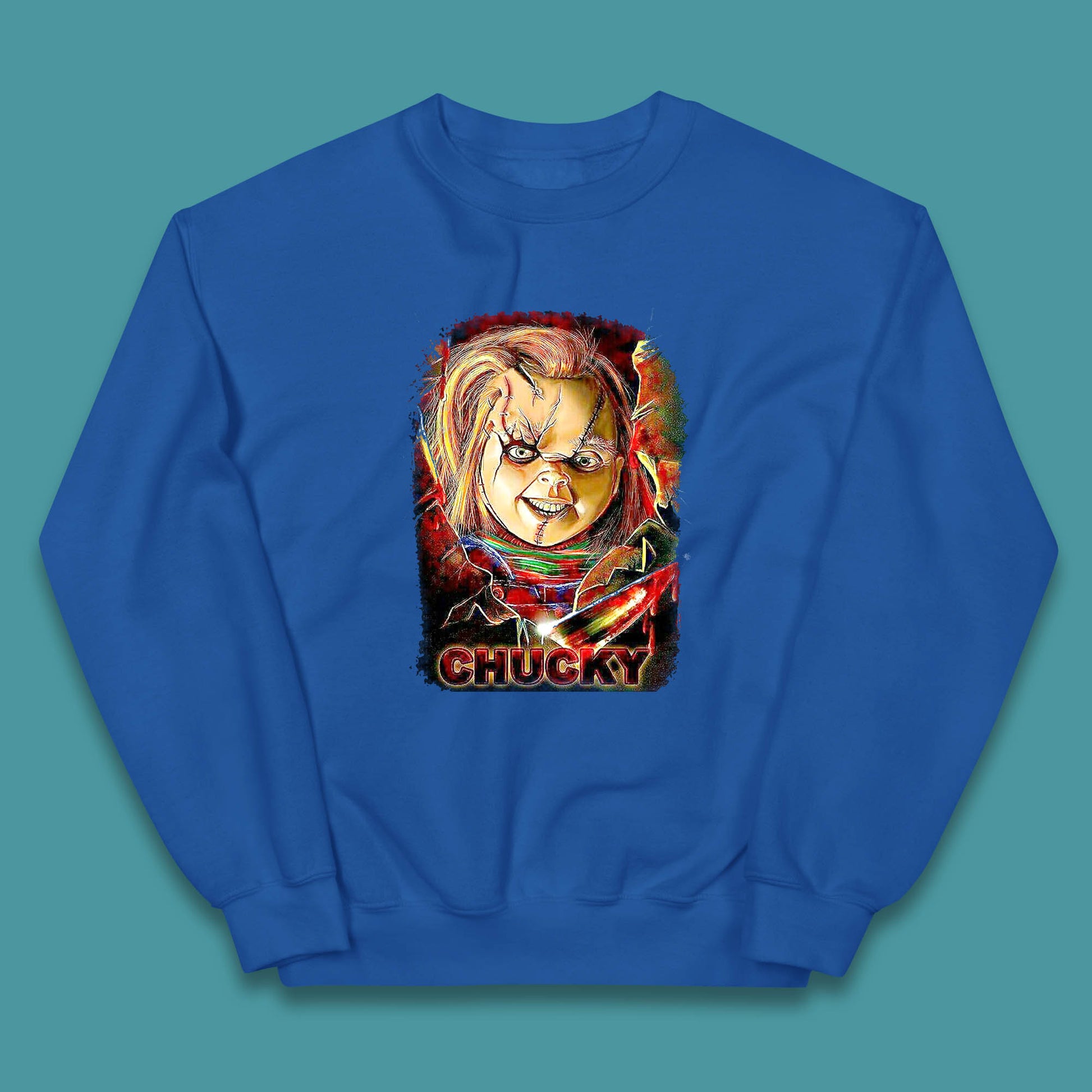 Chucky Distressed Childs Play Horror Monster Creepy Doll Toy Scary Halloween Scary Movie Character Kids Jumper