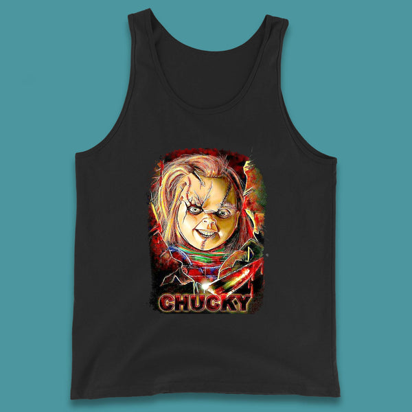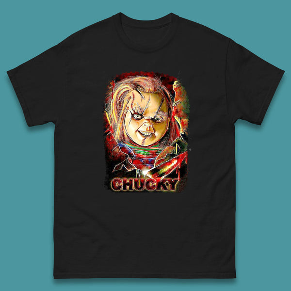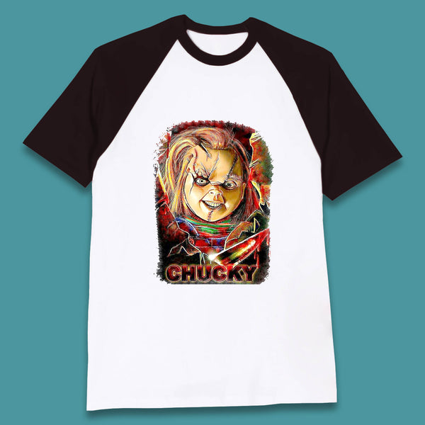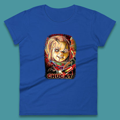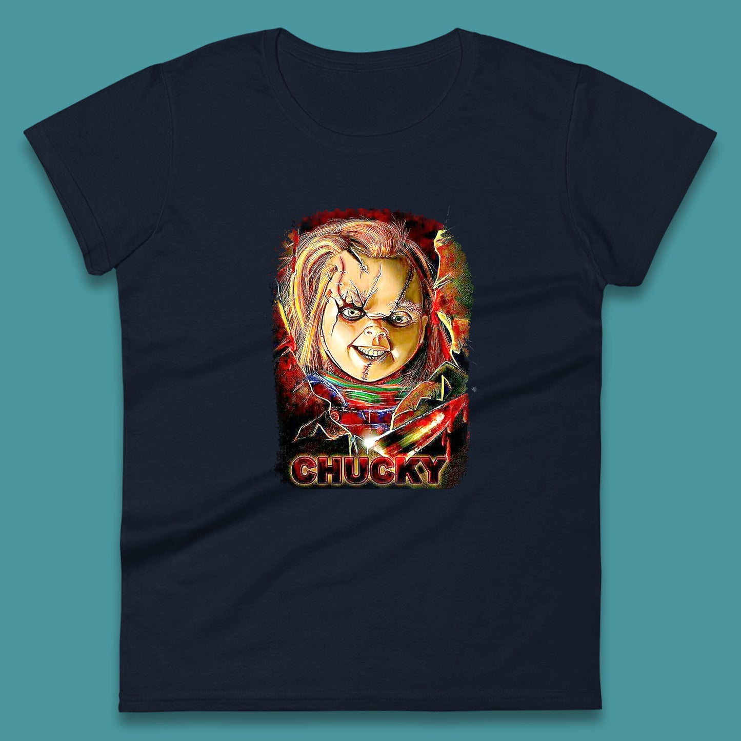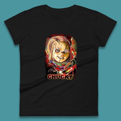 Chucky Distressed Childs Play Horror Monster Creepy Doll Toy Scary Halloween Scary Movie Character Womens Tee Top