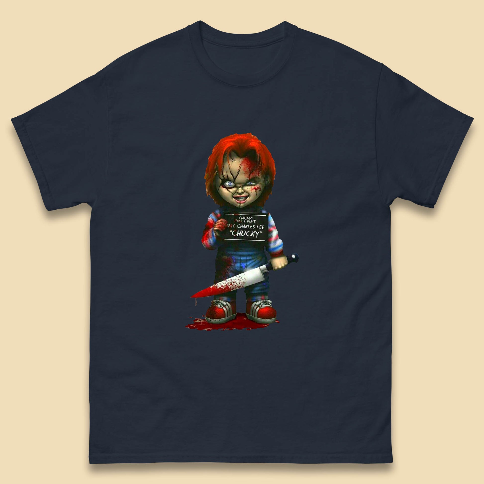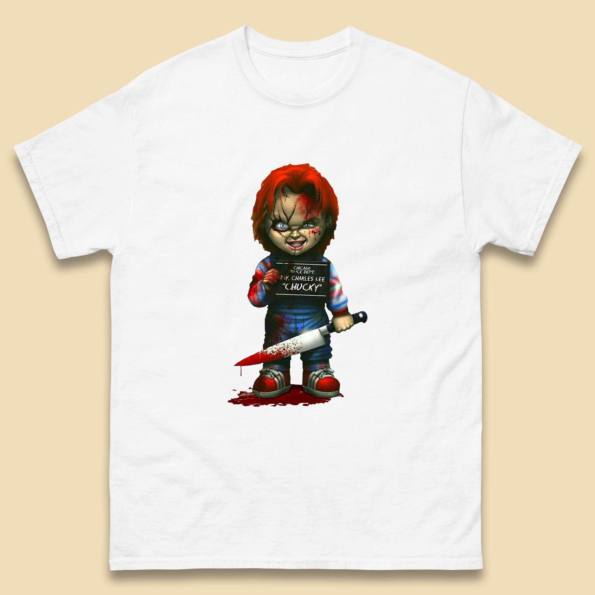 Chucky Mug Shot Chicago Police Dept Ray Charles Lee Chucky Halloween Horror Movie Mens Tee Top