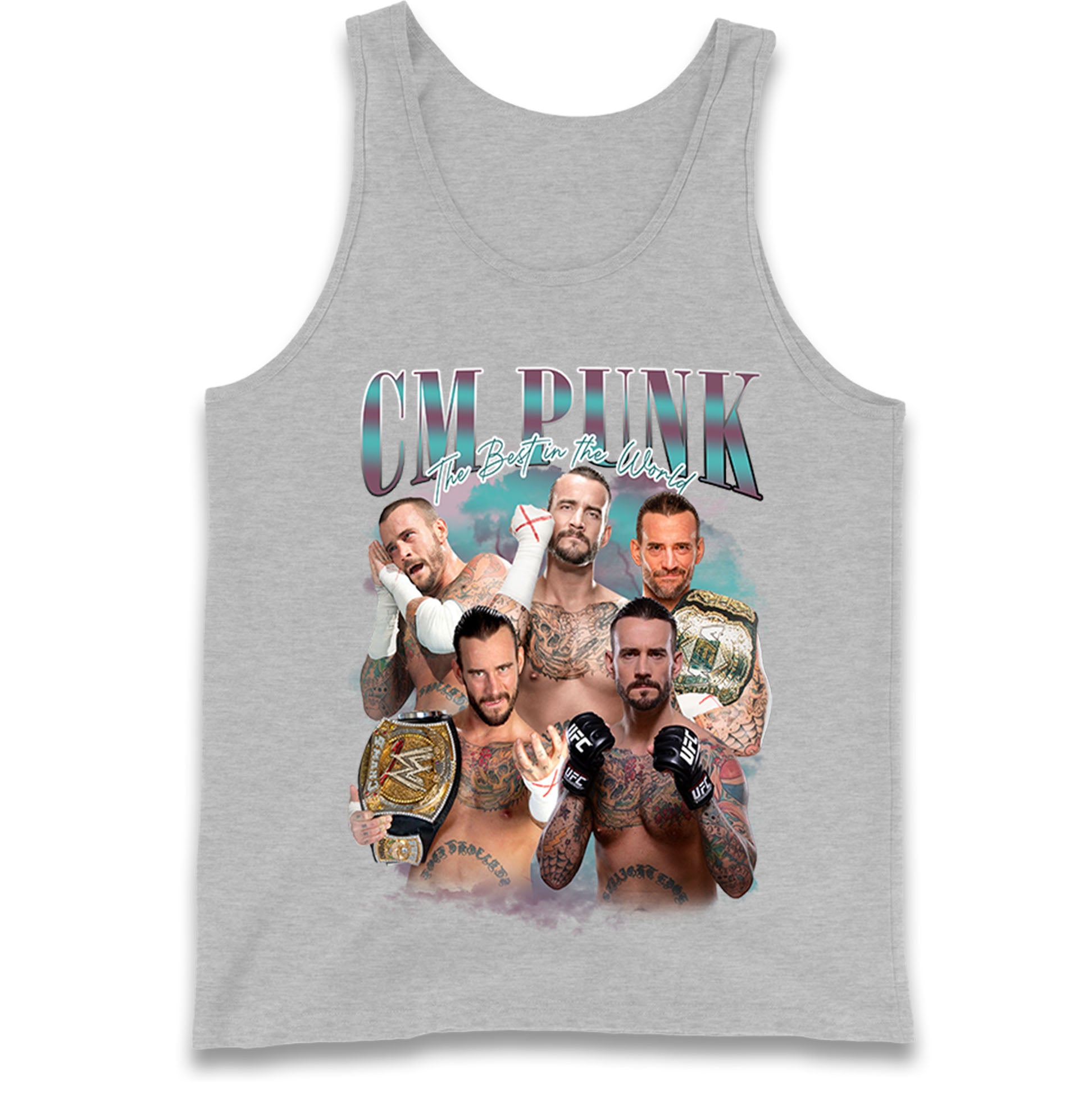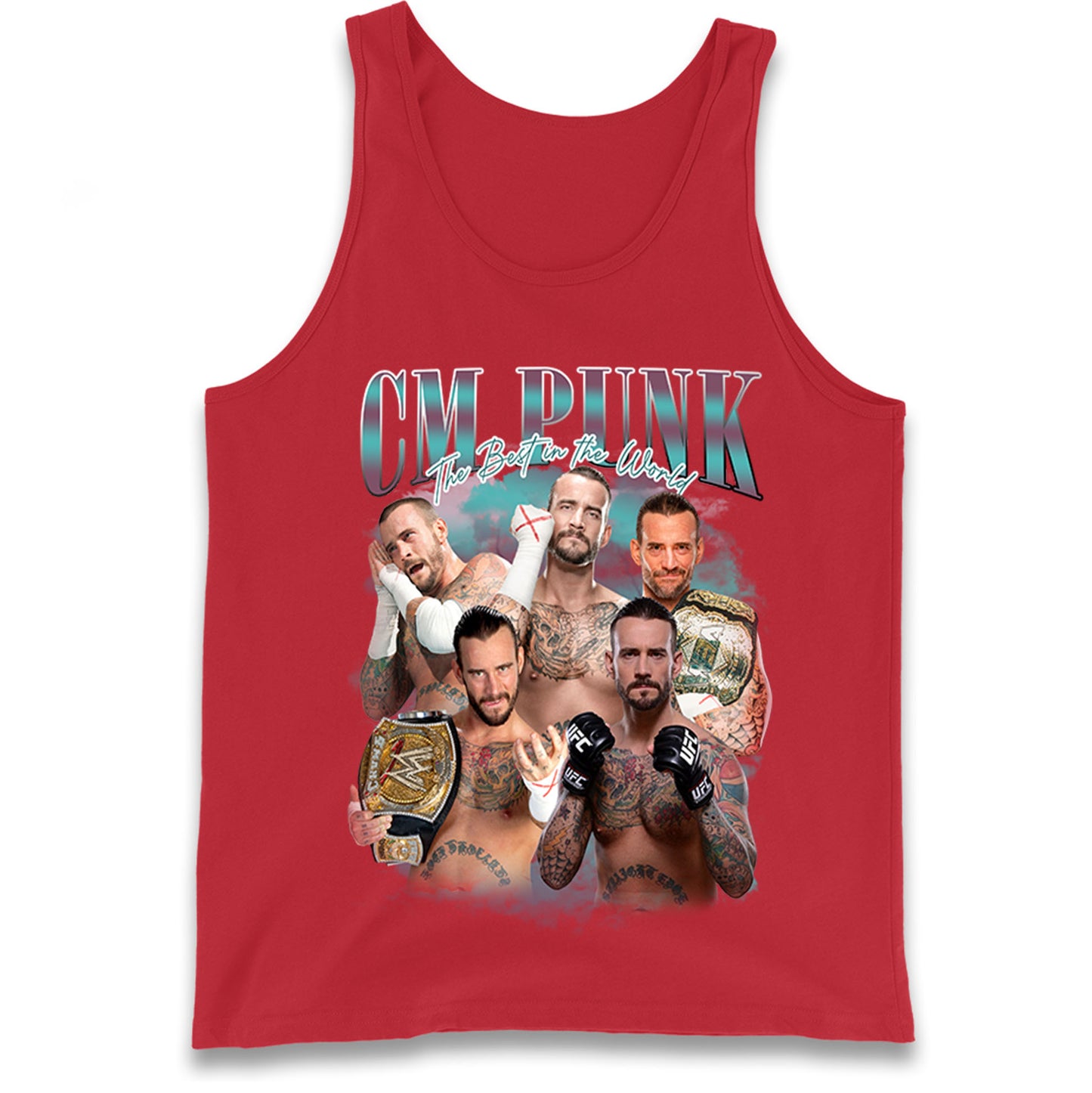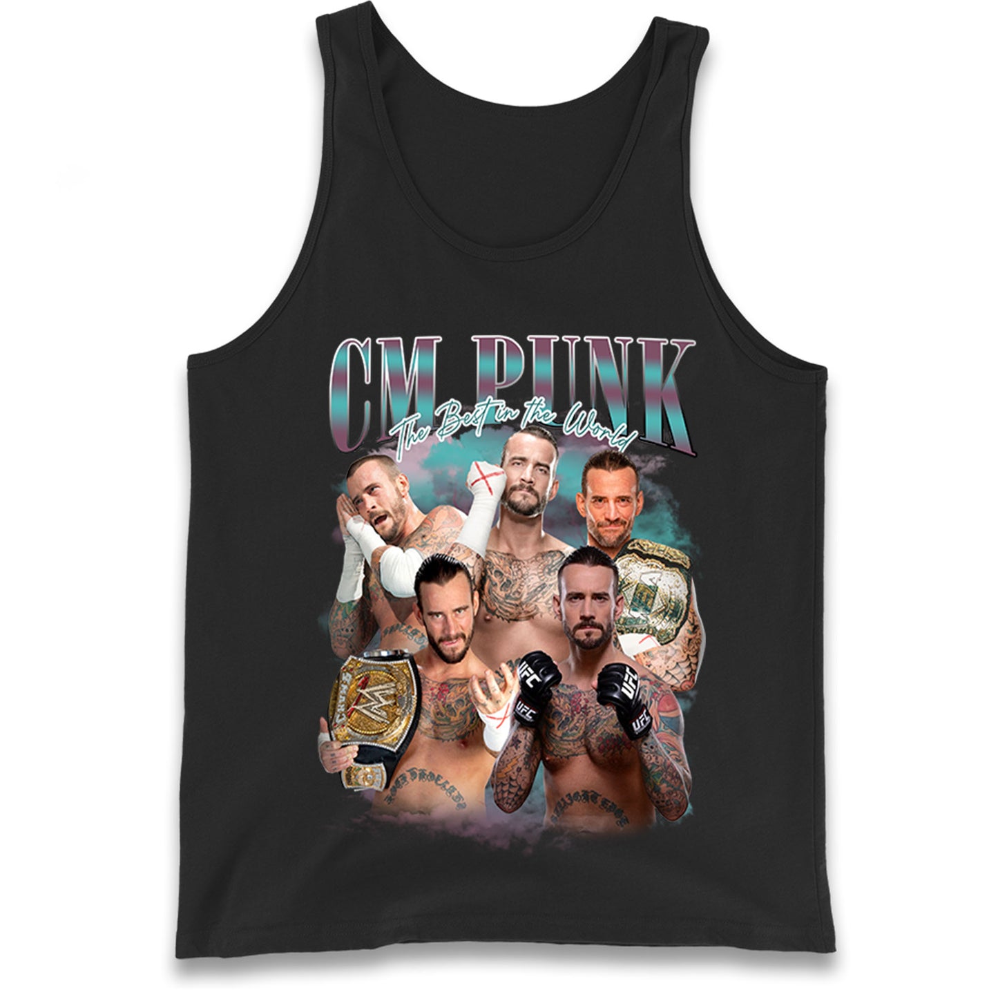 For the ultimate fan, this CM Punk Best in The World Tank Top is a must-have. Crafted from quality materials, it boasts the wrestler's iconic catchphrase and logo. Stay cool and comfortable while showing your admiration for the "Straight Edge Superstar". Dominate the fashion game with this top.