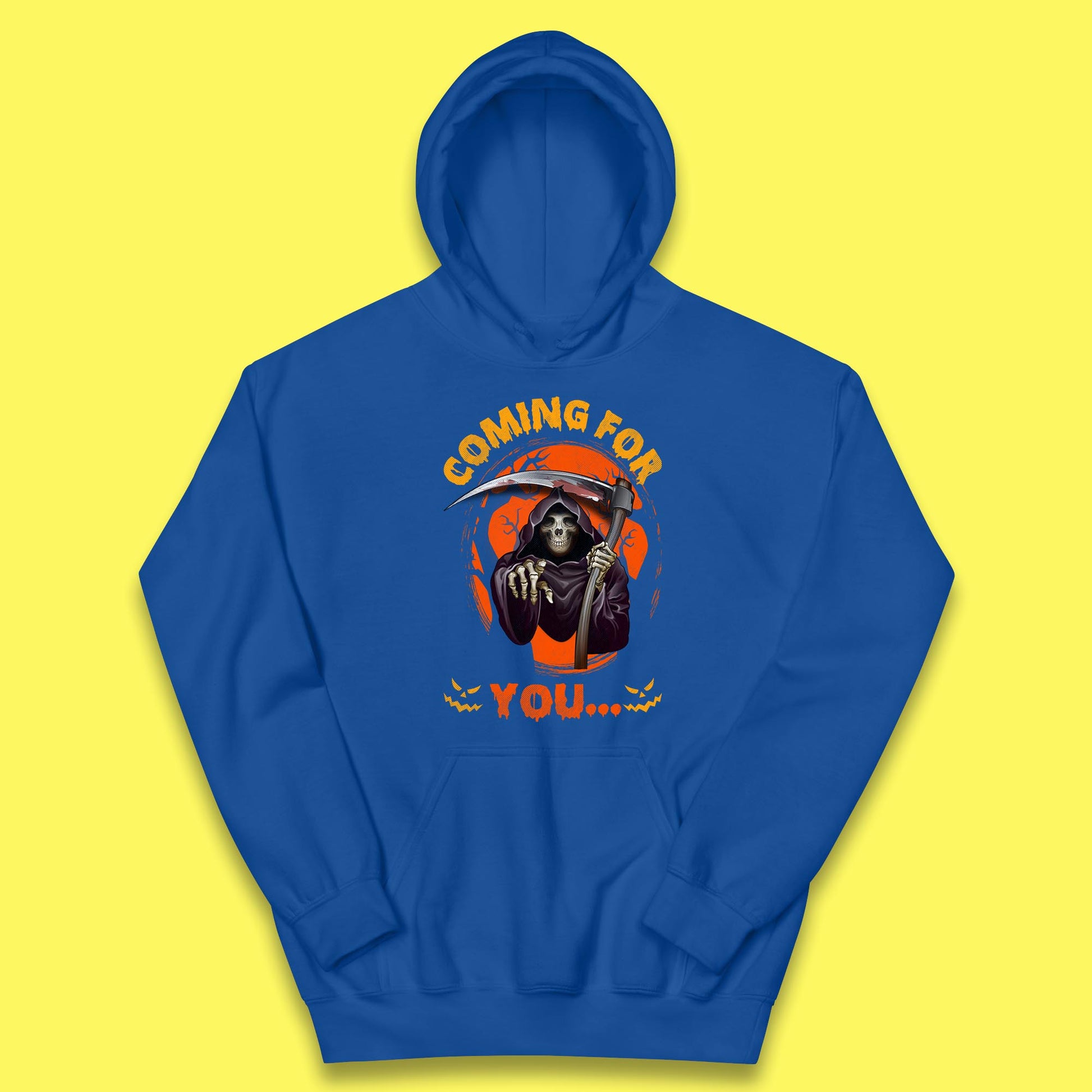 Coming For You Grim Reaper Halloween Skeleton With Scythe Halloween Ghost Kids Hoodie
