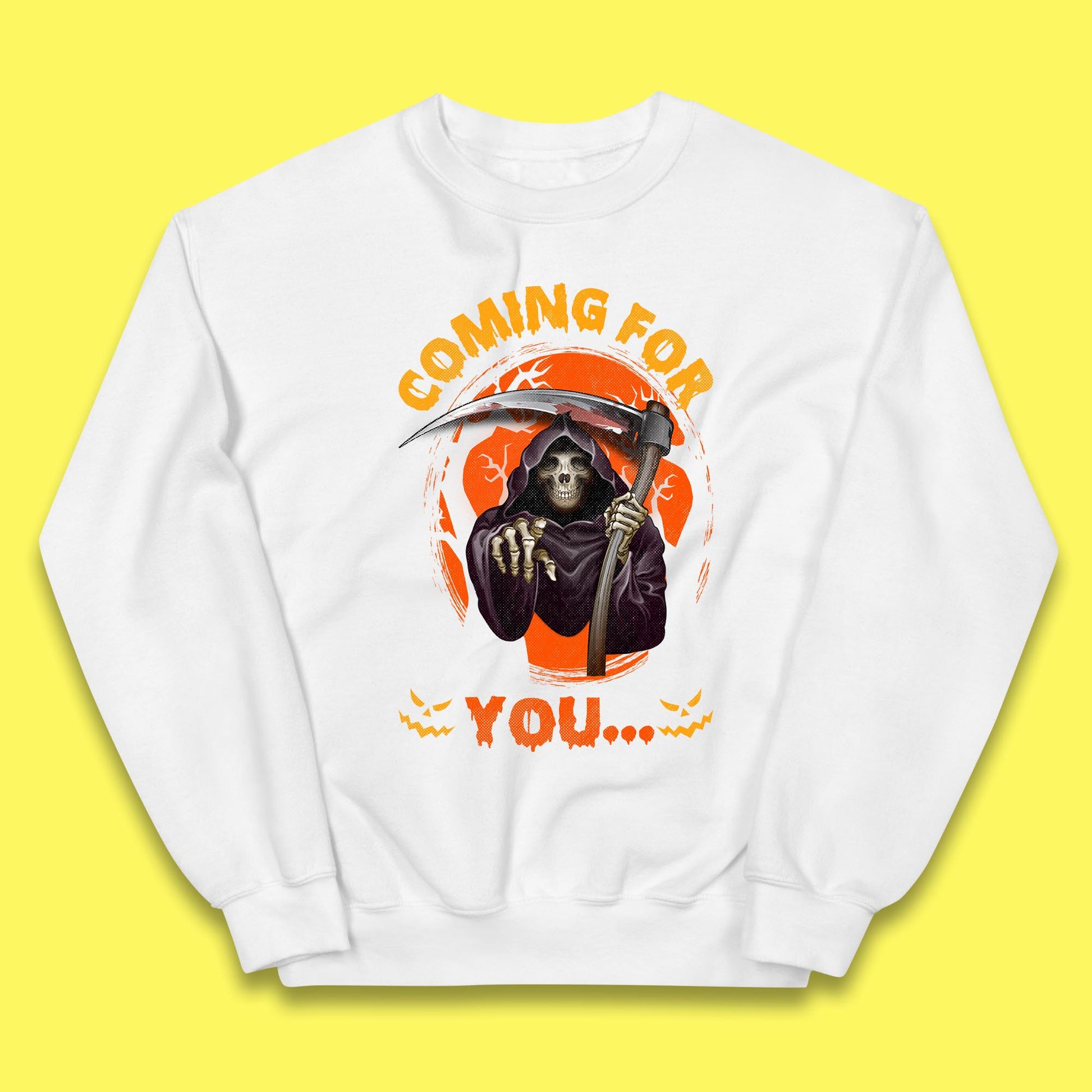 Coming For You Grim Reaper Halloween Skeleton With Scythe Halloween Ghost Kids Jumper