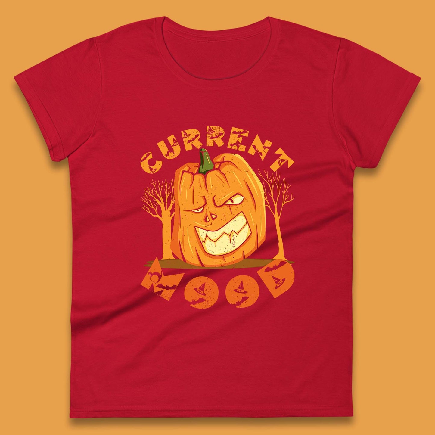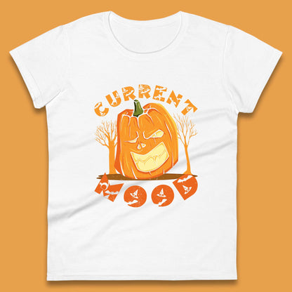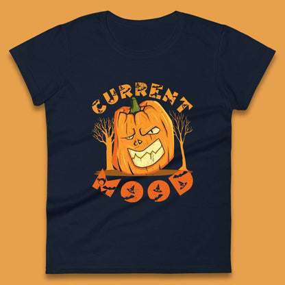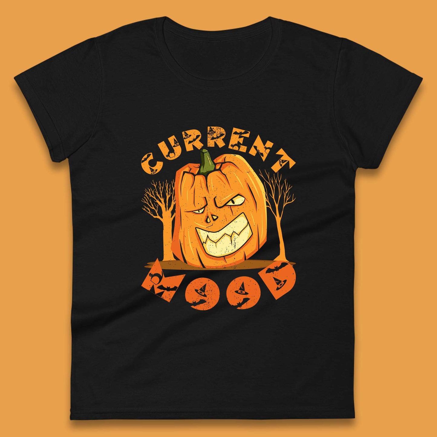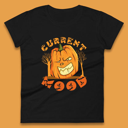 Current Mood Halloween Pumpkin Evil Scary Smile Horror Jack-o-Lantern Womens Tee Top