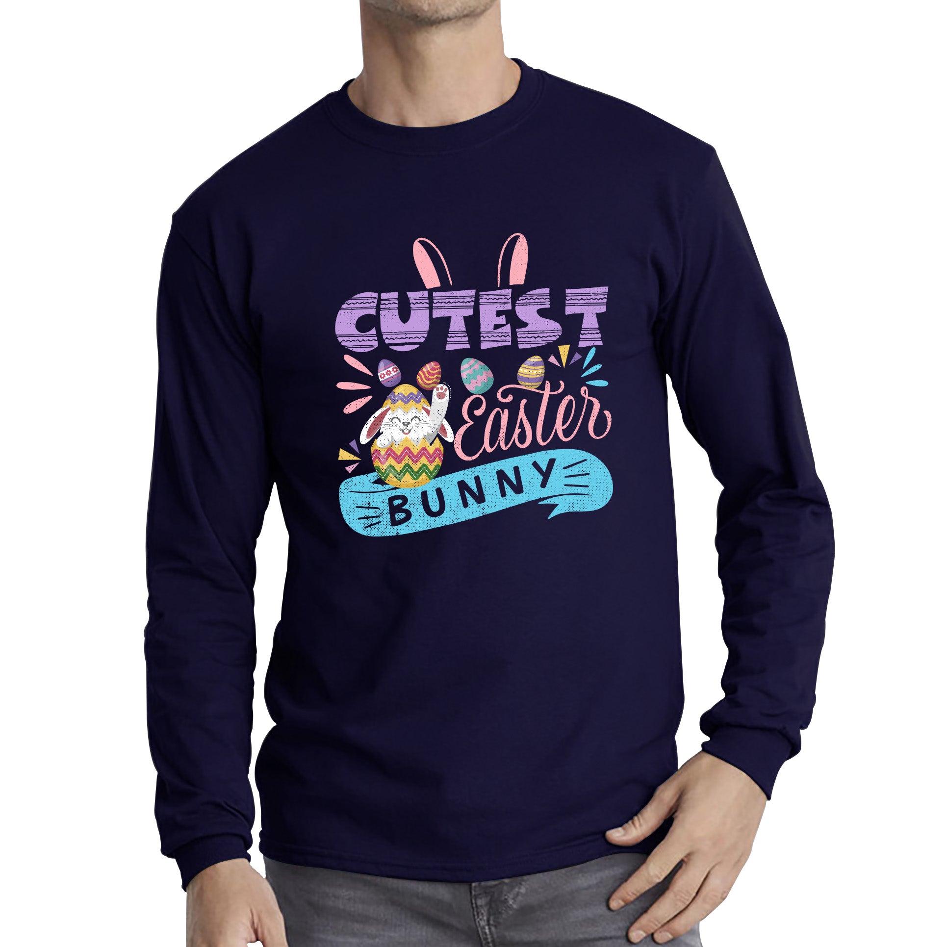 Cutest Easter Bunny Happy Easter Day Colorful Easter Eggs Easter Bunny Rabbit Easter Egg Hunt Long Sleeve T Shirt