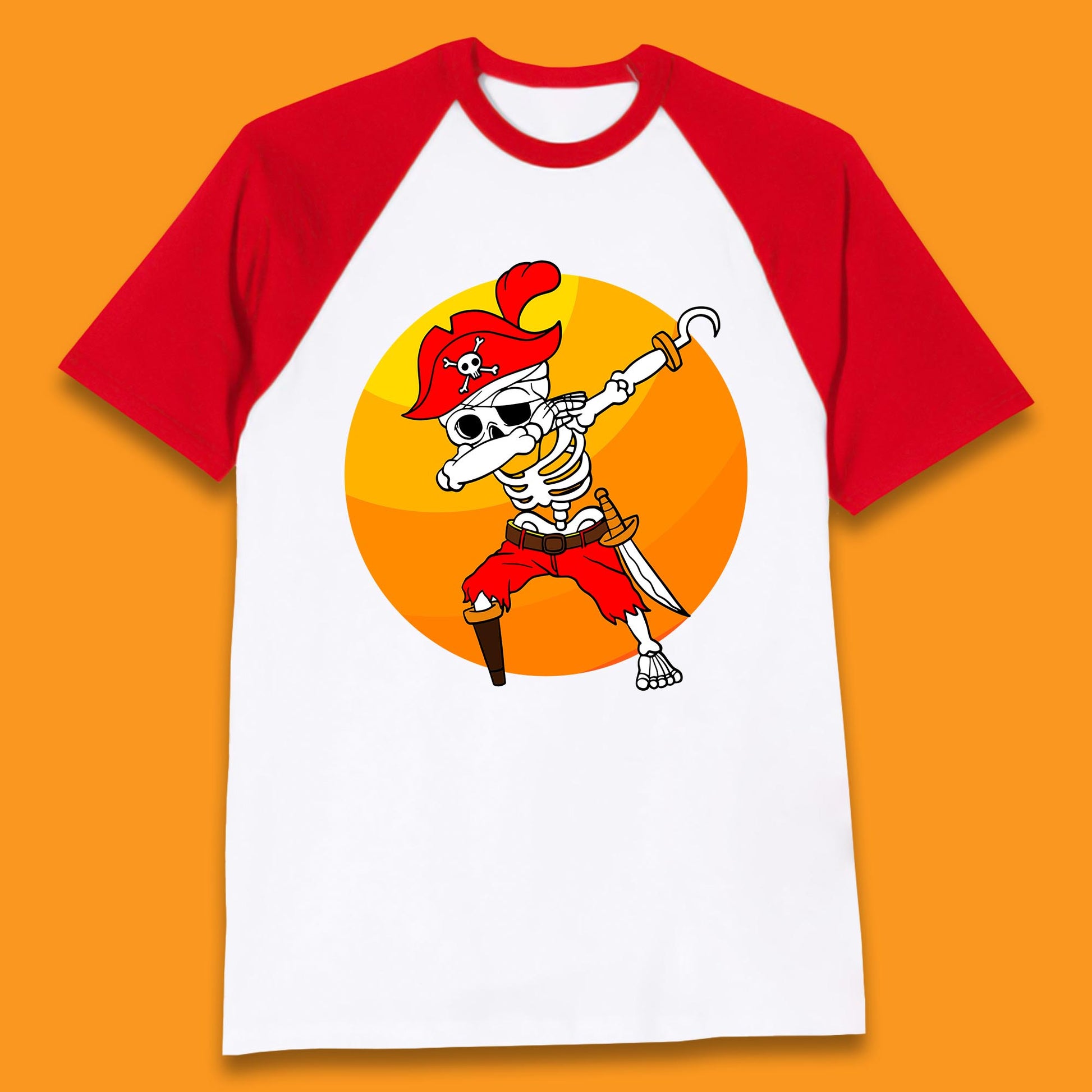 Dabbing Pirate Skeleton Halloween Jolly Roger Funny Halloween Costume Baseball T Shirt