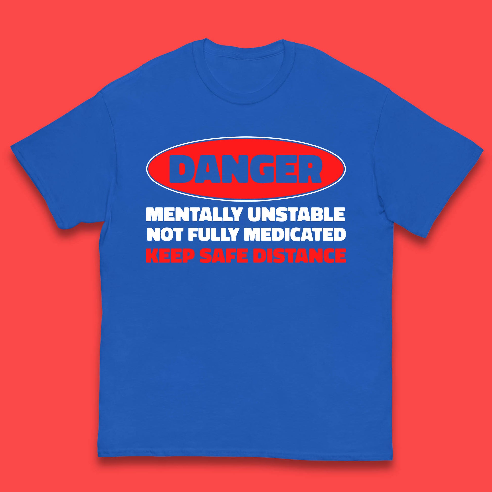 Danger Mentally Unstable Not Fully Medicated Keep Safe Distance Funny Saying Quote Kids T Shirt