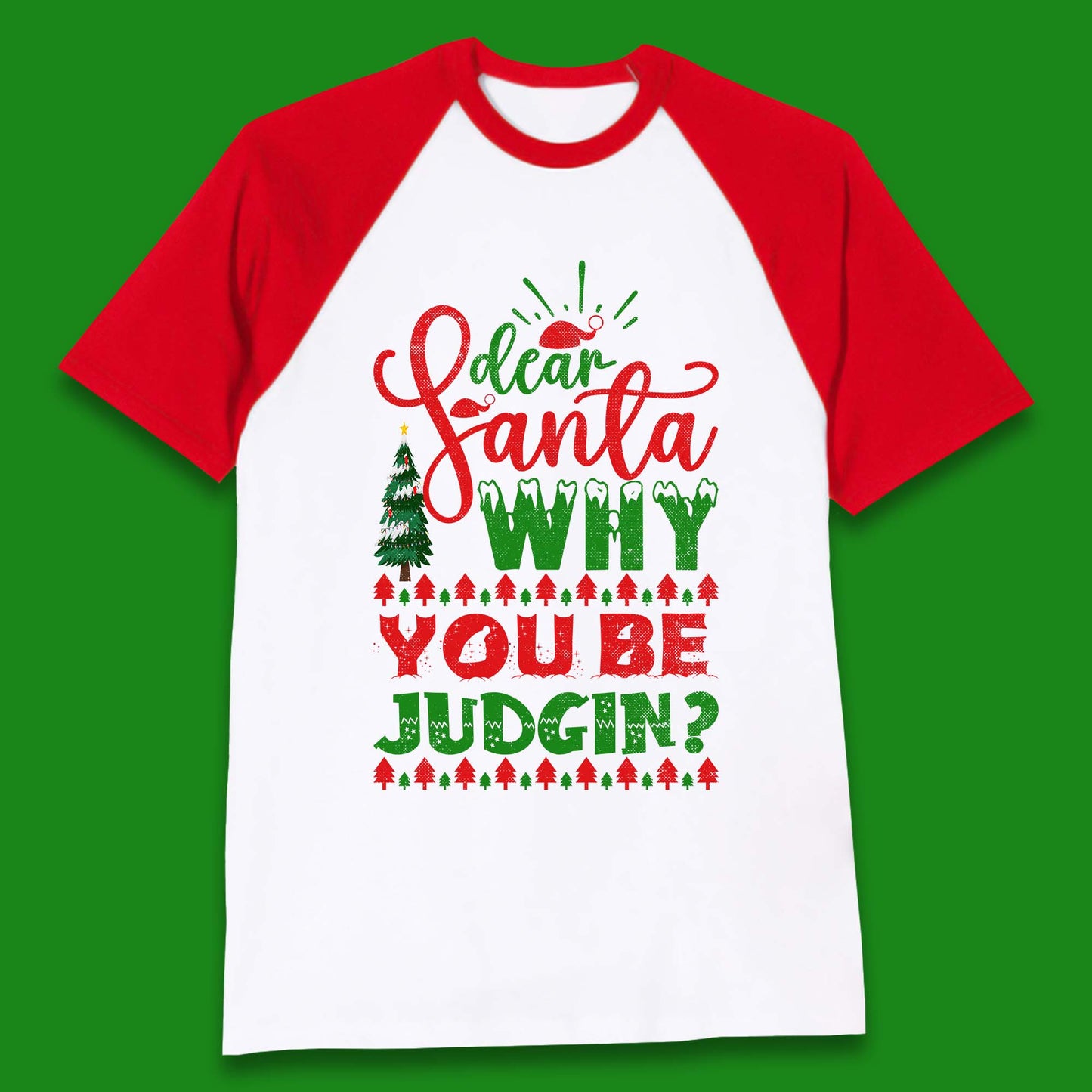 Dear Santa Why You Be Judgin? Christmas Tree Baseball T Shirt