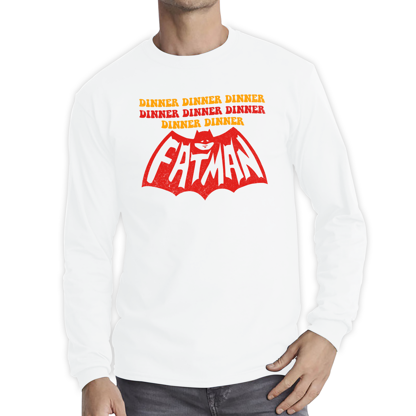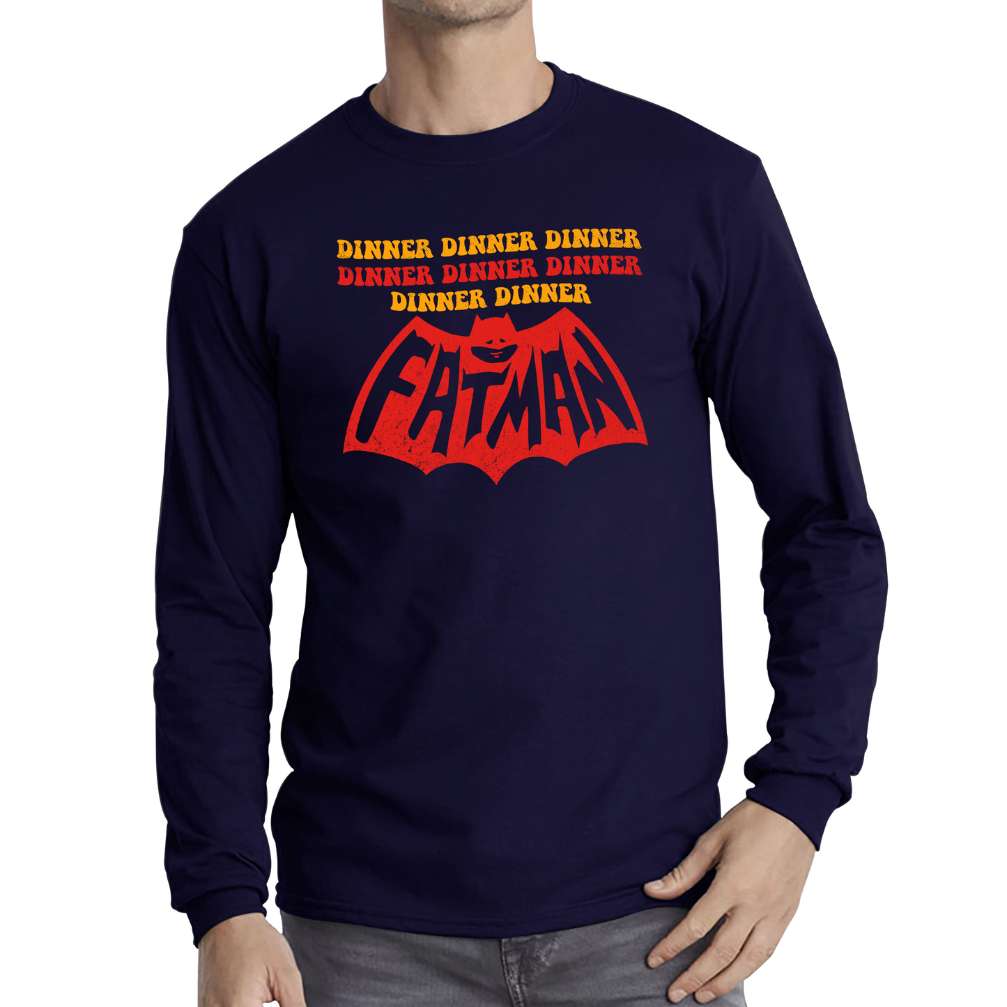 Add a touch of humor to your wardrobe with the Dinner Dinner Dinner Fatman Funny Long Sleeve T-Shirt. Featuring a playful and humorous graphic, this tee is perfect for those who enjoy a good laugh and a comfortable fit.