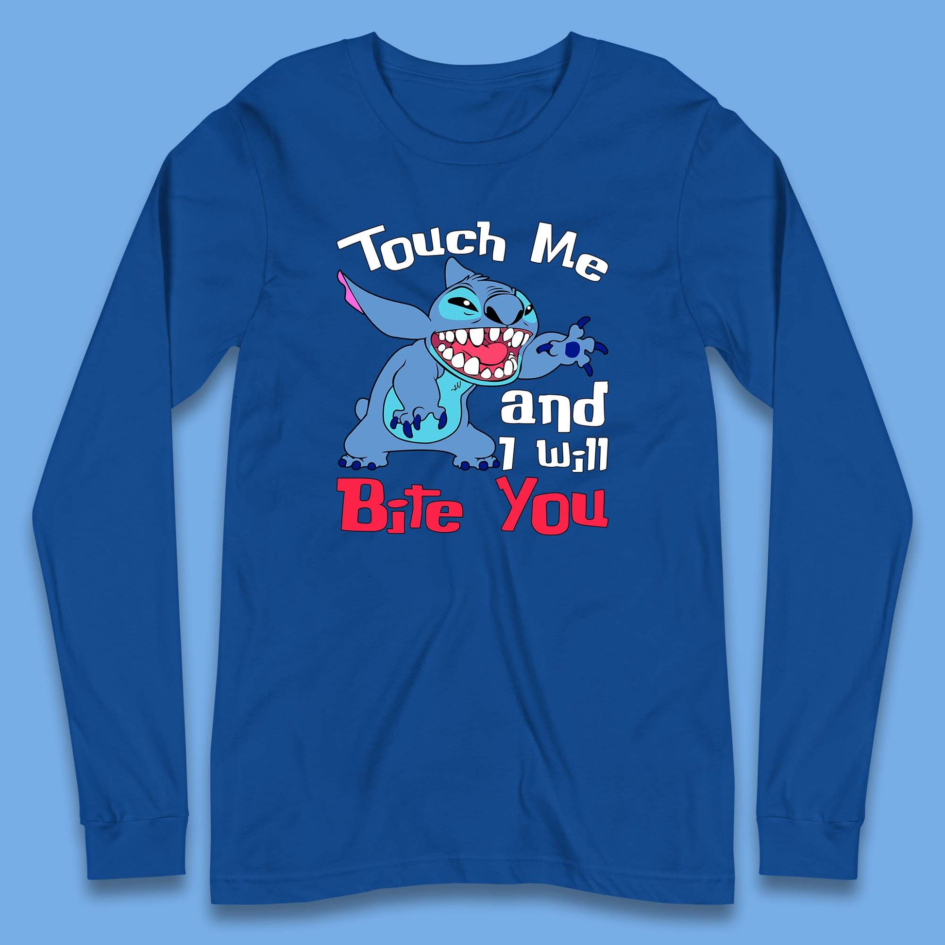 Disney Angry Stitch Cartoon Touch Me And I Will Bite You Lilo & Stitch Long Sleeve T Shirt