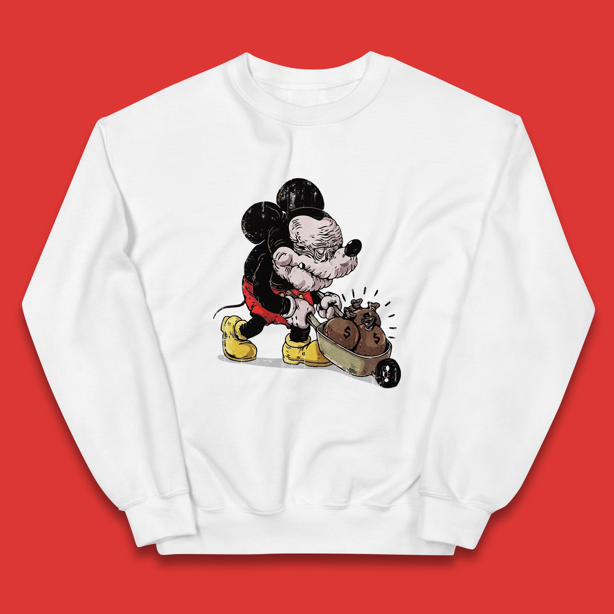 Disney Famous Oldies Mickey Mouse Pull Wheelbarrow Full Of Money Bags Cartoon Character Disney World Kids Jumper