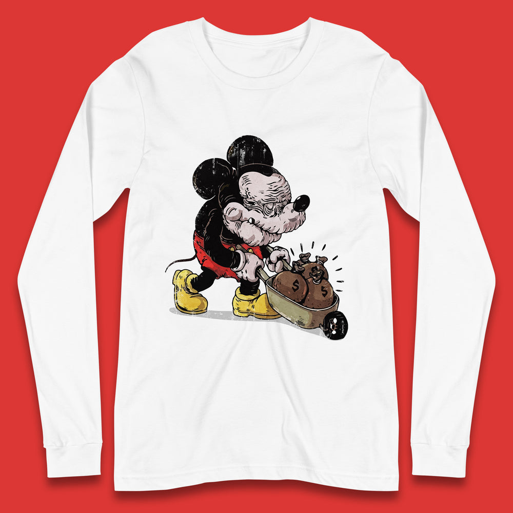 Disney Famous Oldies Mickey Mouse Pull Wheelbarrow Full Of Money Bags Cartoon Character Disney World Long Sleeve T Shirt