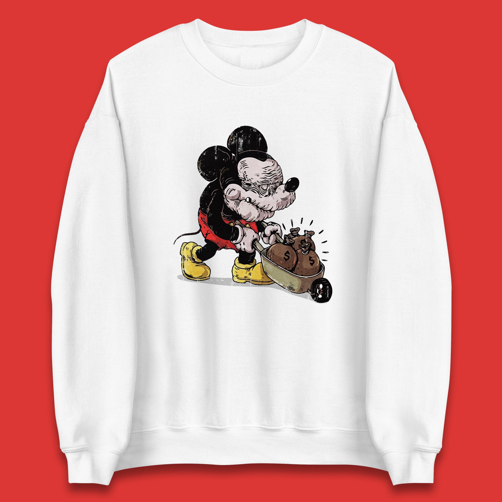 Disney Famous Oldies Mickey Mouse Pull Wheelbarrow Full Of Money Bags Cartoon Character Disney World Unisex Sweatshirt