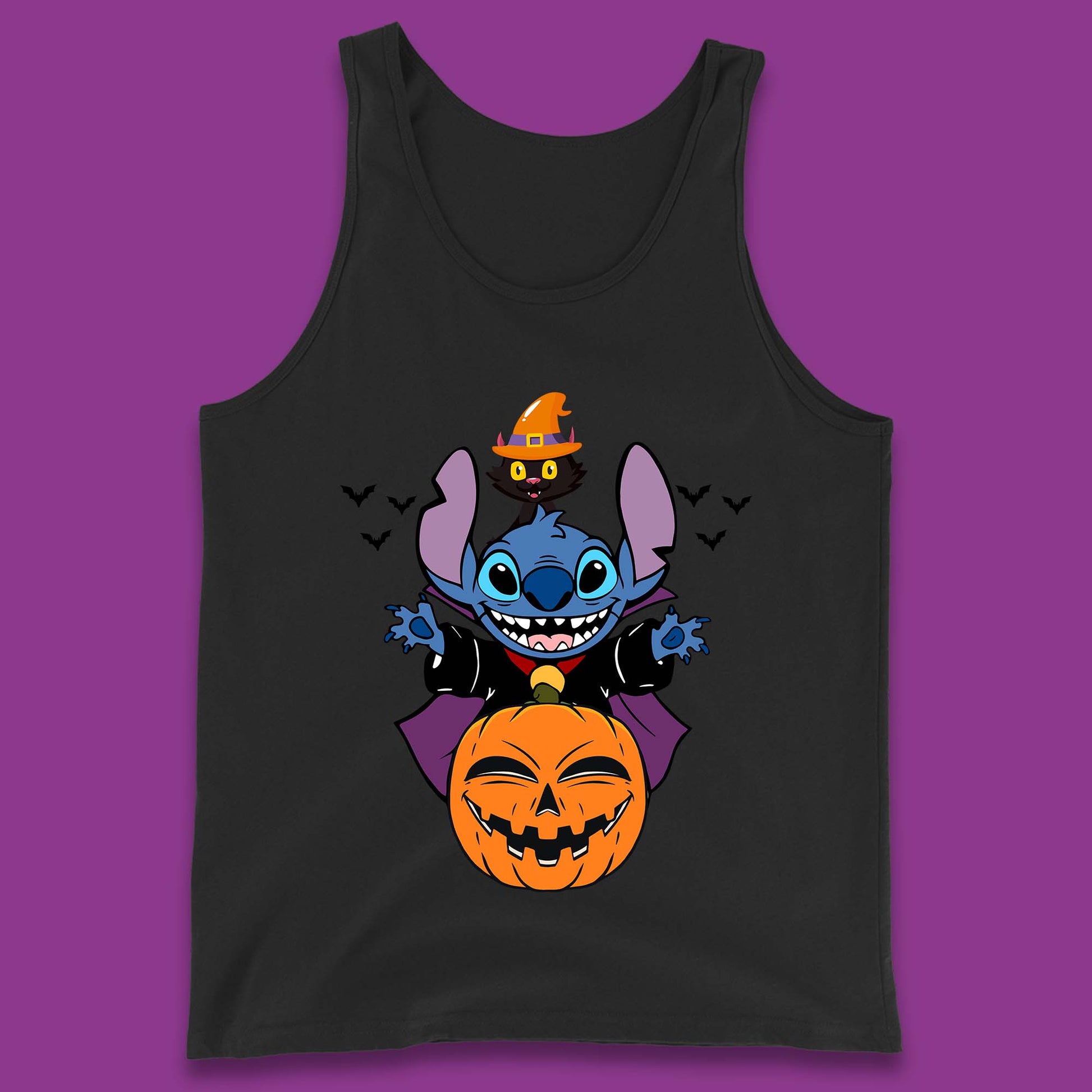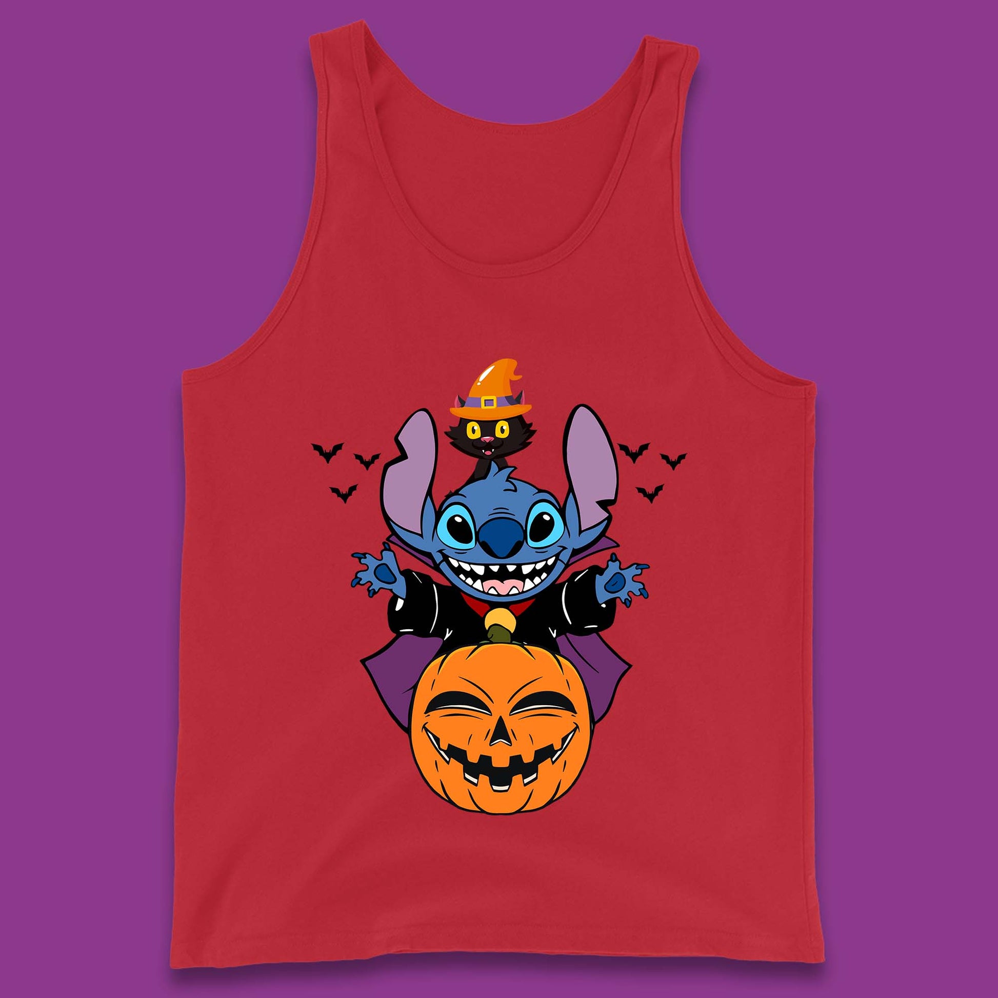 Disney Halloween Pumpkin Devil Stitch With Black Cat Horror Scary Disney Lilo & Stitch Tank Top