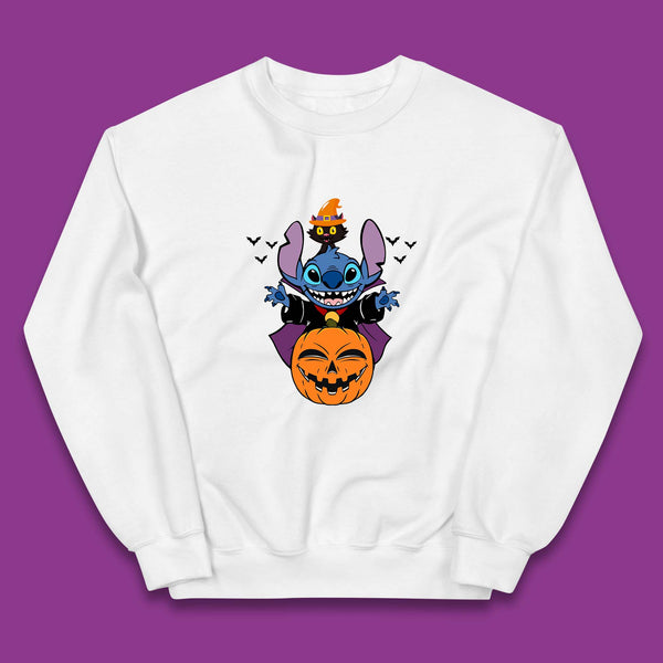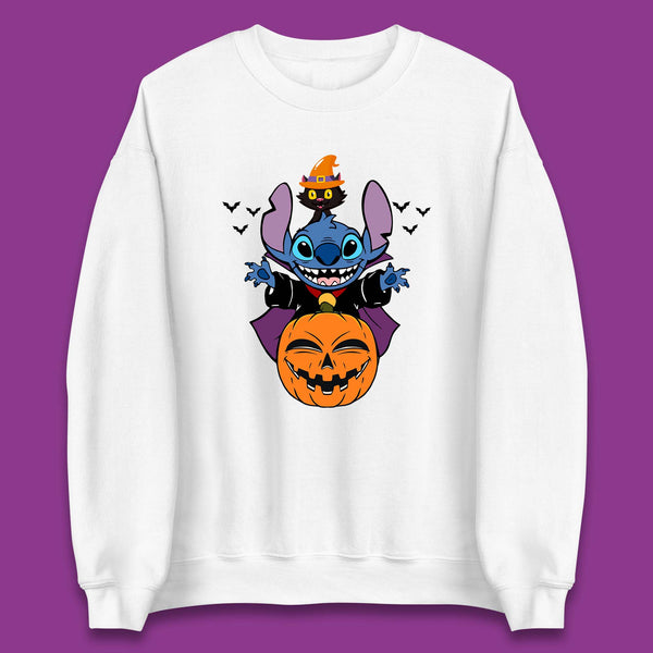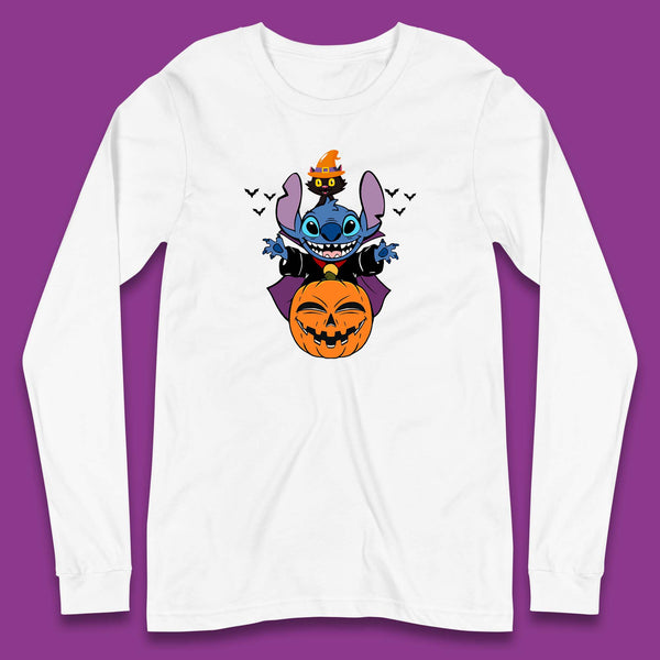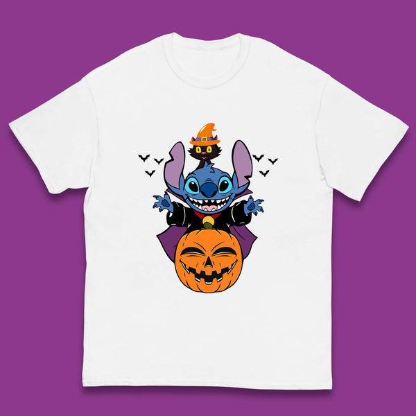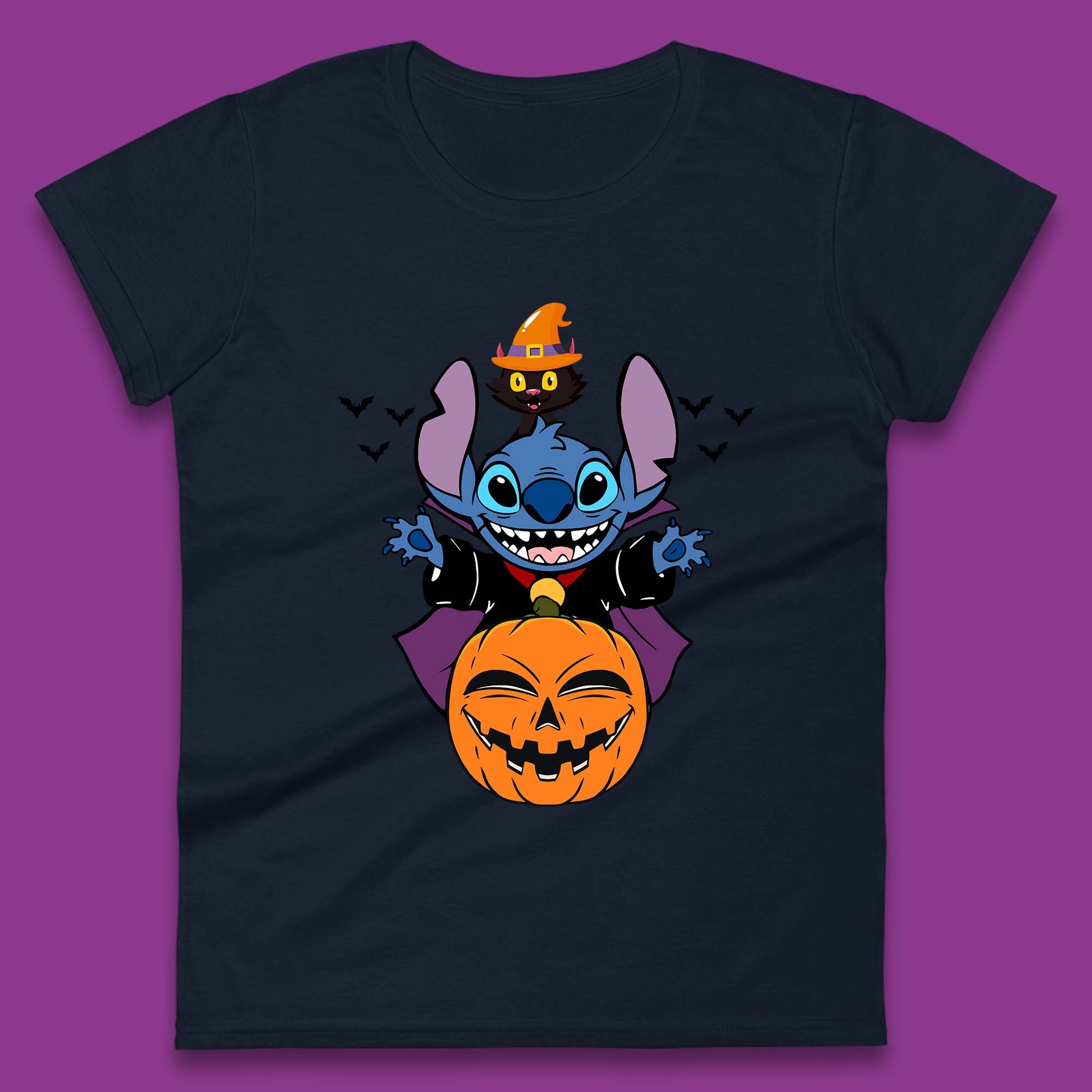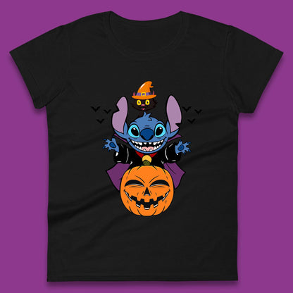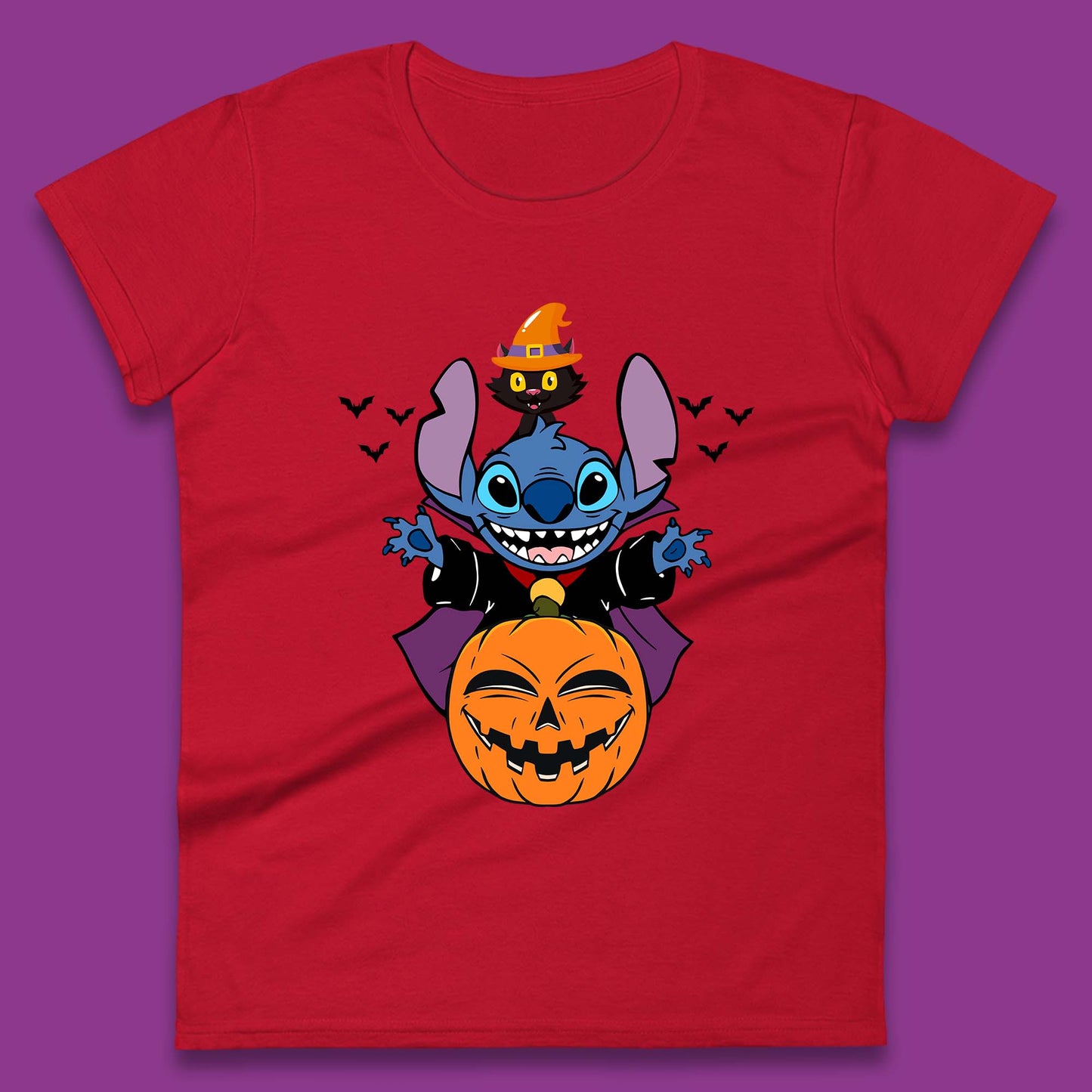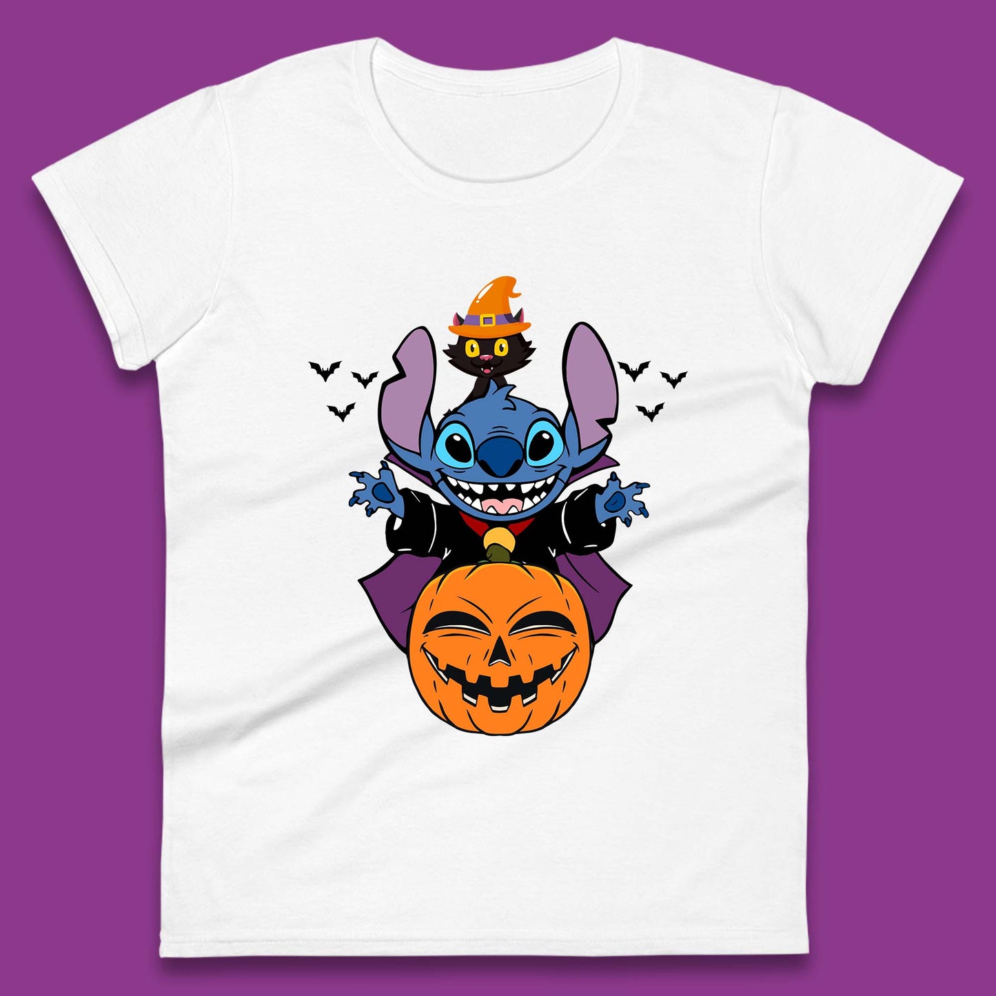 Disney Halloween Pumpkin Devil Stitch With Black Cat Horror Scary Disney Lilo & Stitch Womens Tee Top