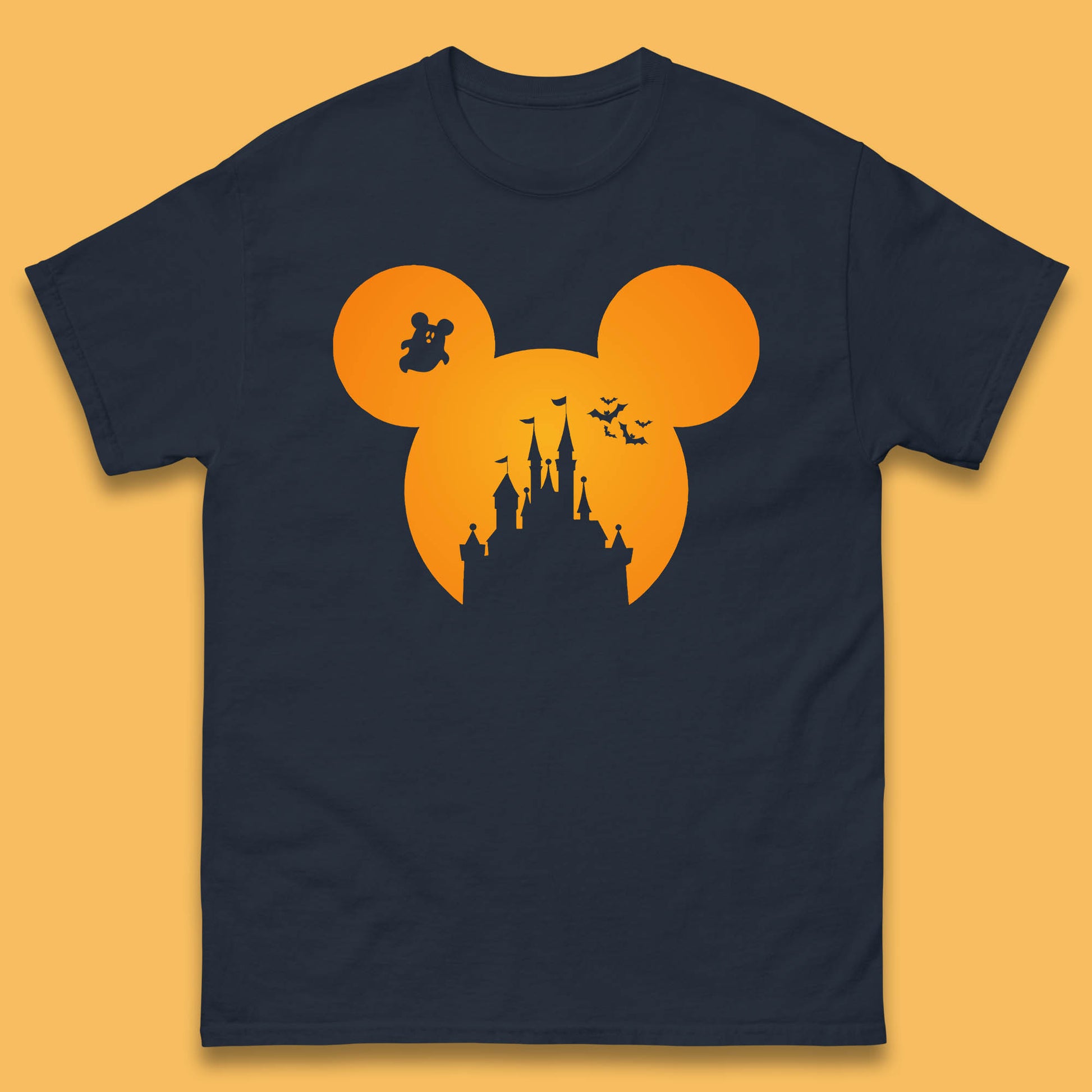Disney Mickey Mouse Happy Halloween Disney Castle Halloween Scary Boo Flying Bats Mens Tee Top