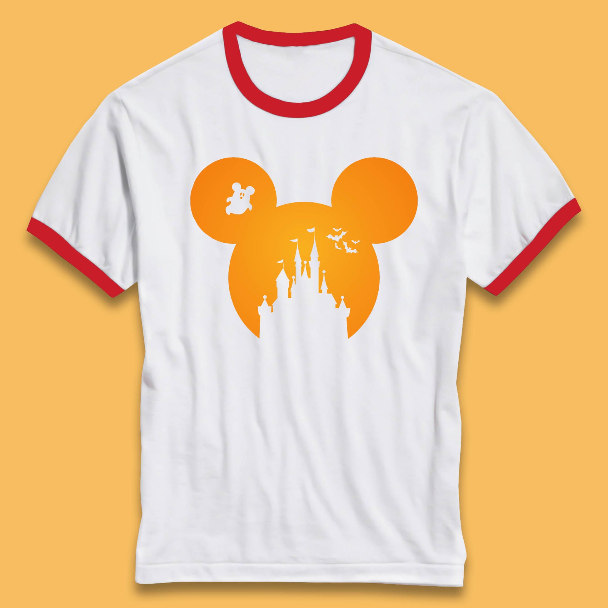 Disney Mickey Mouse Happy Halloween Disney Castle Halloween Scary Boo Flying Bats Ringer T Shirt