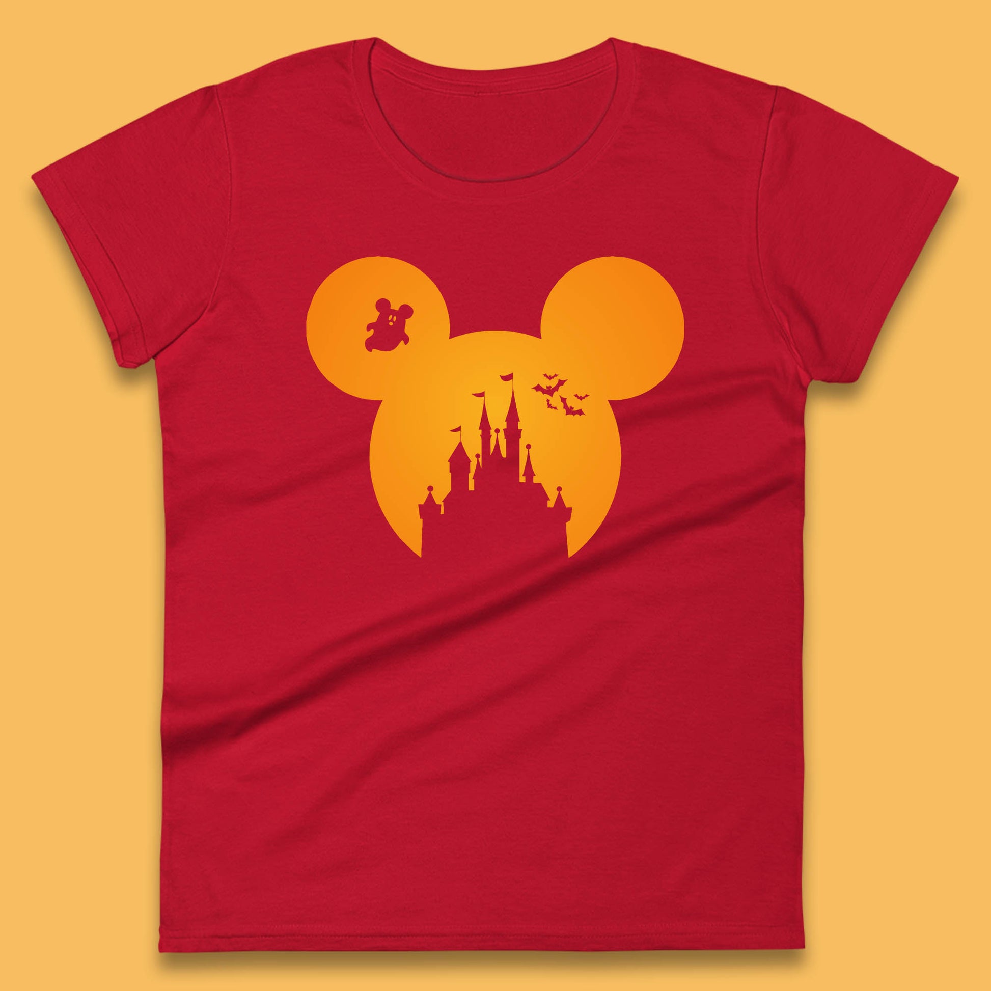 Disney Mickey Mouse Happy Halloween Disney Castle Halloween Scary Boo Flying Bats Womens Tee Top