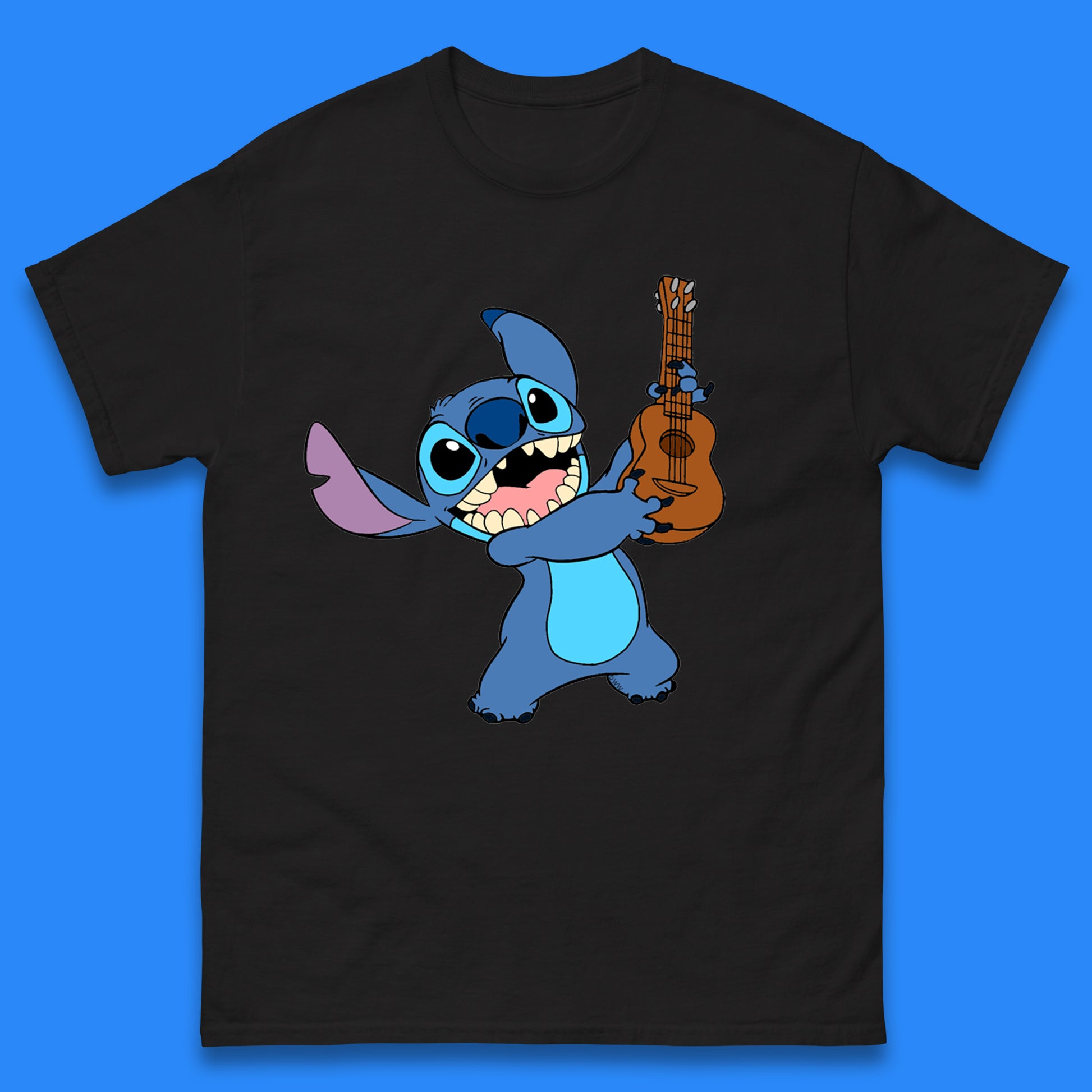 Disney Ohana Playing The Guitar Ohana Lilo & Stitich In Happy Mood Cartoon Character Disney World Mens Tee Top