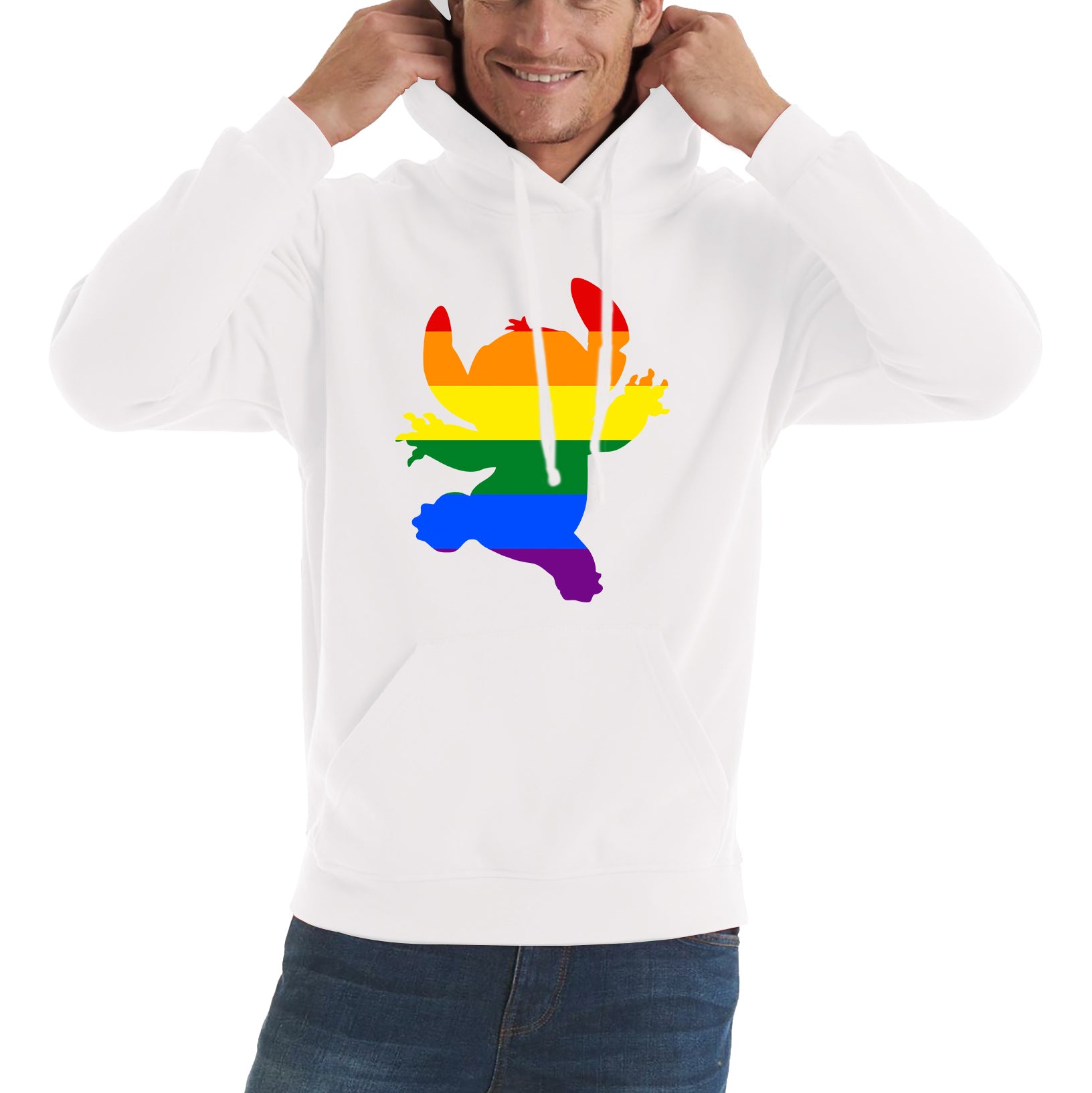 Disney Ohana Stitch Pride LGBT Lilo & Stitch Comedy Cartoon Pride Month LGBTQ+ Rainbow Colours Unisex Hoodie