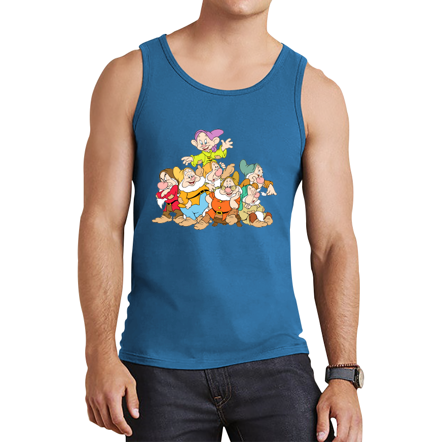 Celebrate Disney magic with the Disney Snow White and The Seven Dwarfs tank top. This stylish and comfortable tank top blends the timeless charm of Snow White and her seven dwarfs with a casual, summer-ready design, making it a perfect addition to any Disney fan's wardrobe.