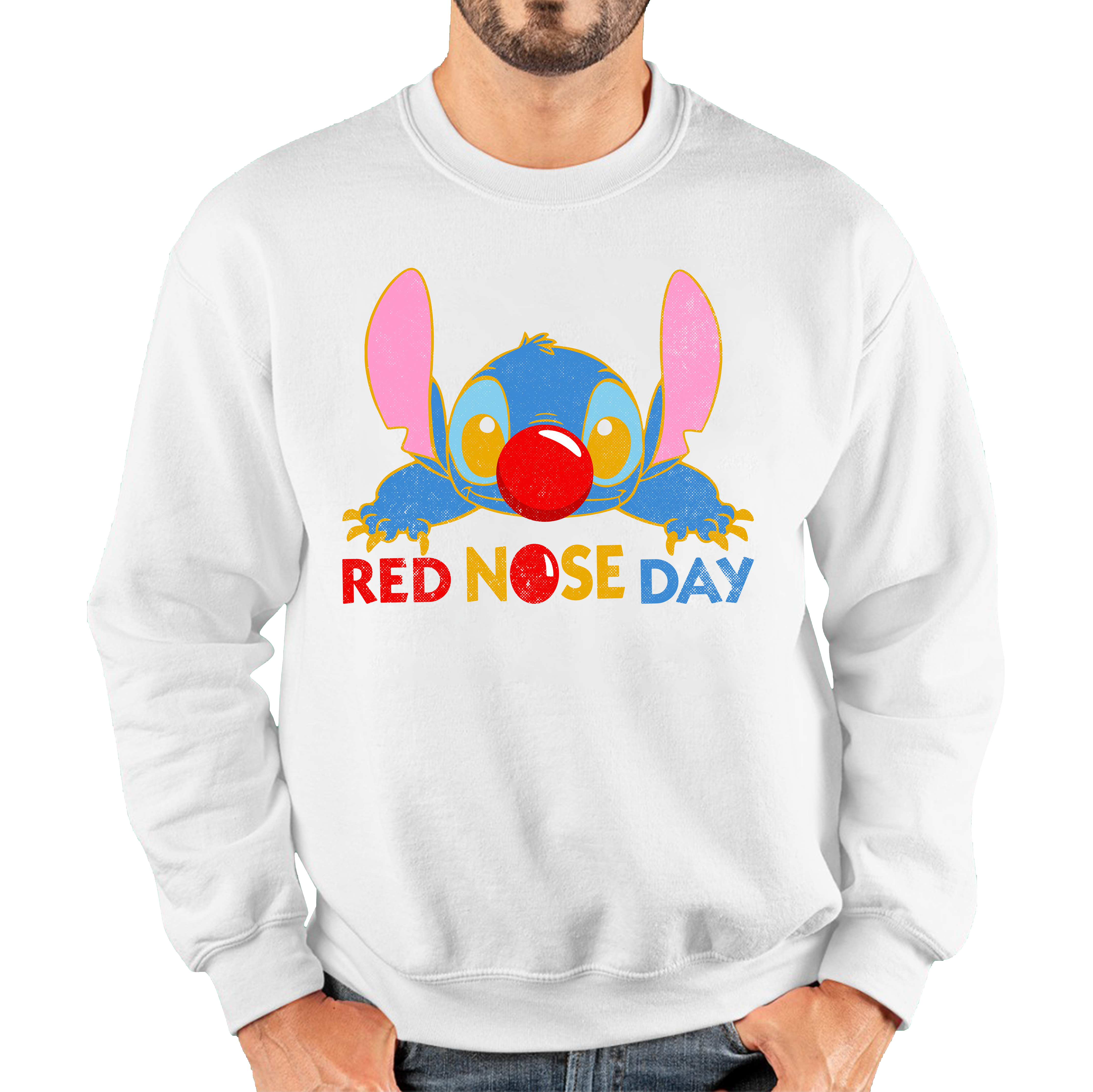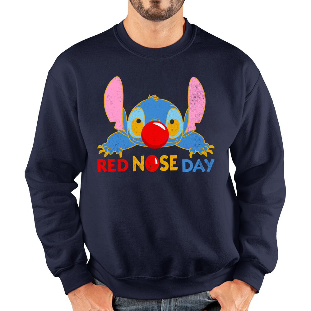 Disney Stitch Red Nose Day Jumper Top Ohana Red Nose Day Funny Adult Sweatshirt. 50% Goes To Charity