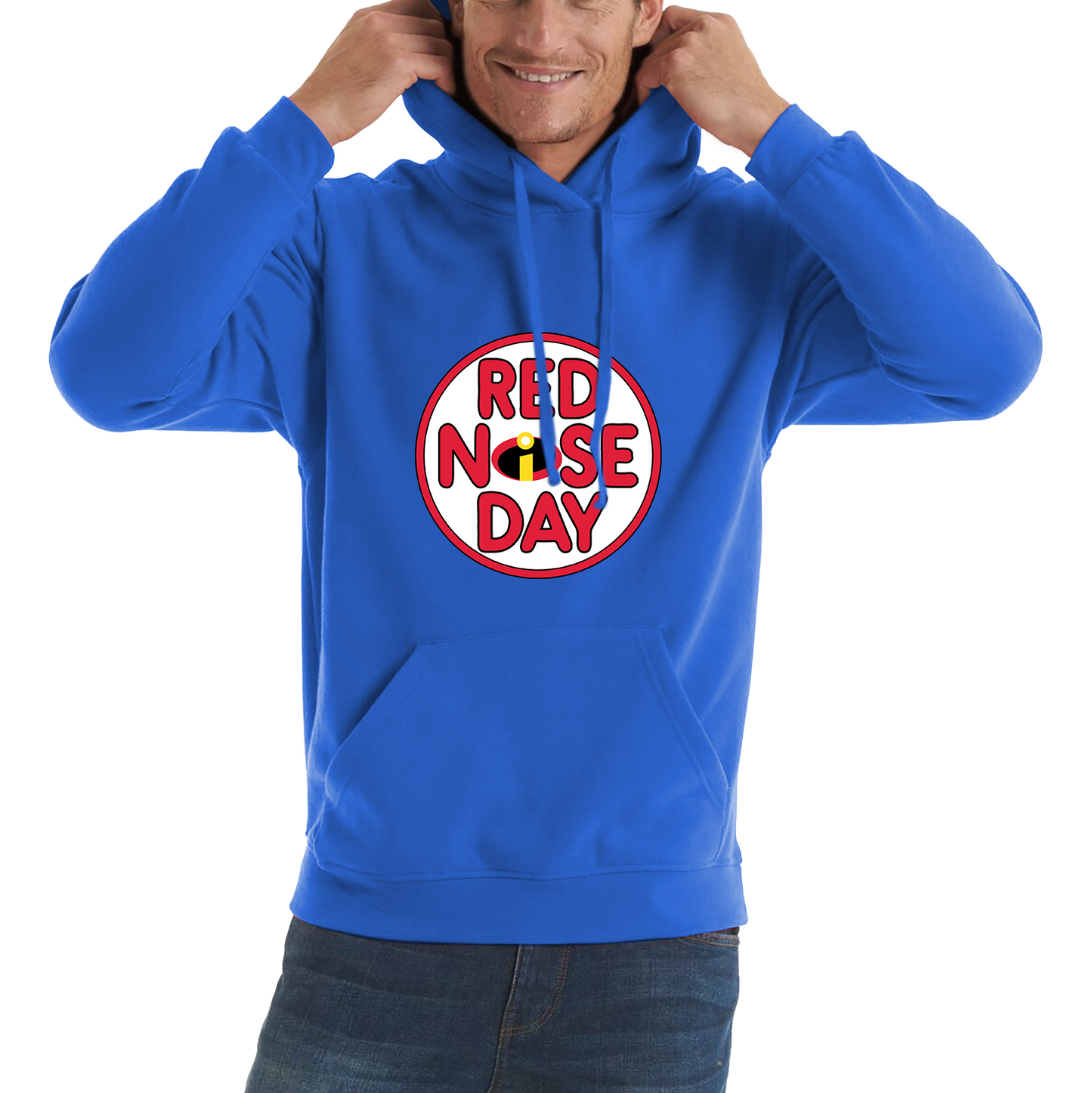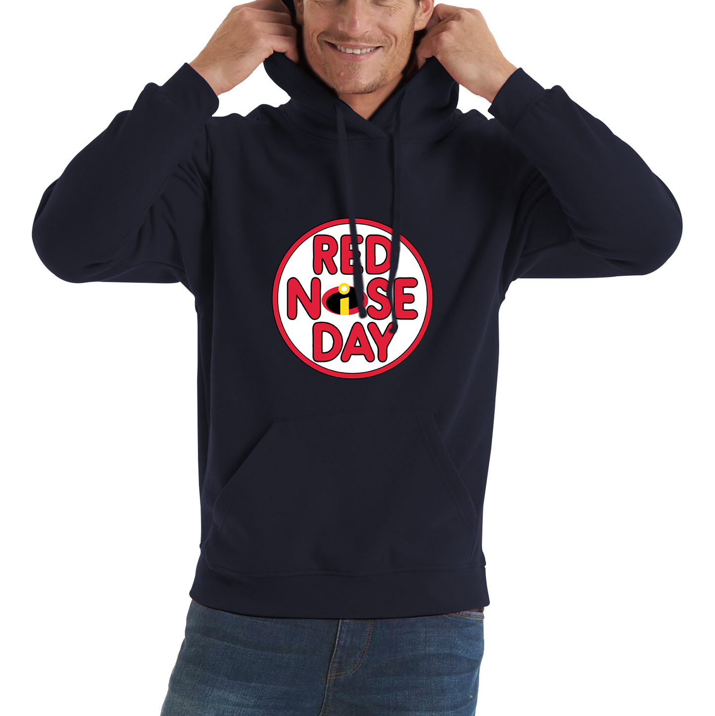 Embrace your inner superhero and support a fantastic cause with The Incredibles Red Nose Day Unisex Hoodie. Featuring a bold graphic of the iconic Incredibles logo enhanced with a playful red nose, this hoodie combines the excitement of your favorite superhero family with a commitment to making a difference.