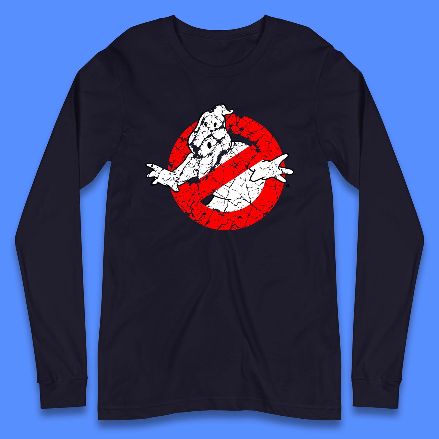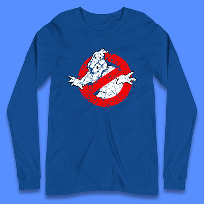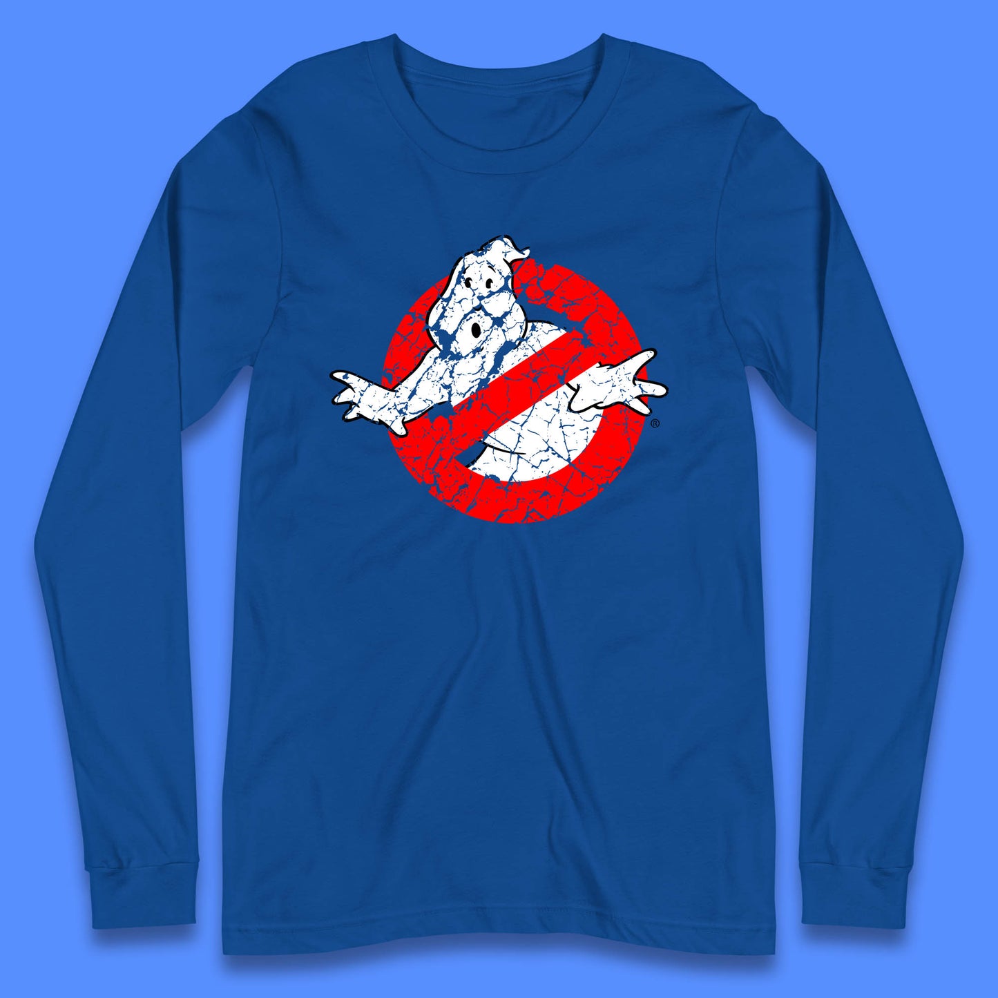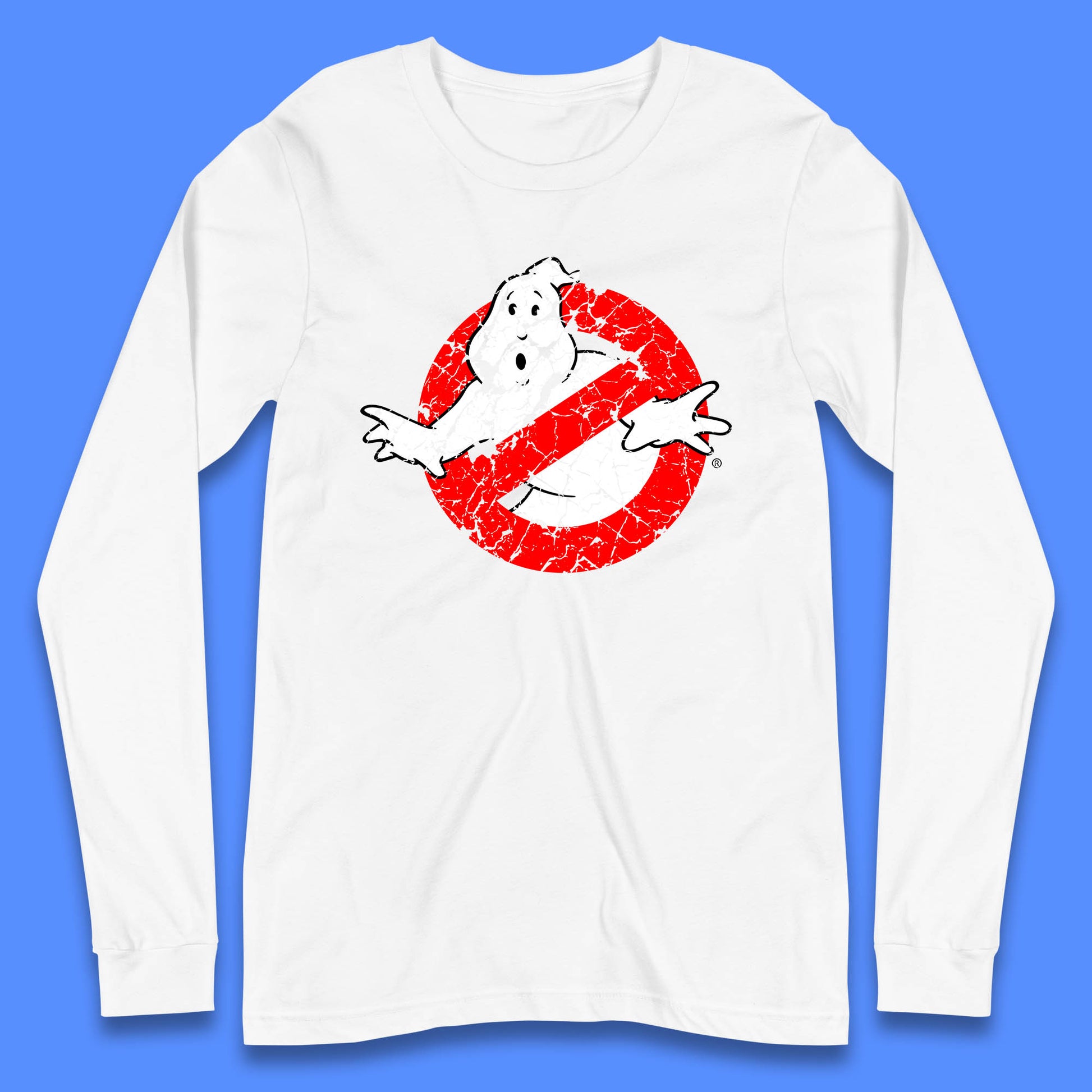 Distressed The Real Ghostbusters No Ghost Symbol Retro Halloween Movie Costume Long Sleeve T Shirt