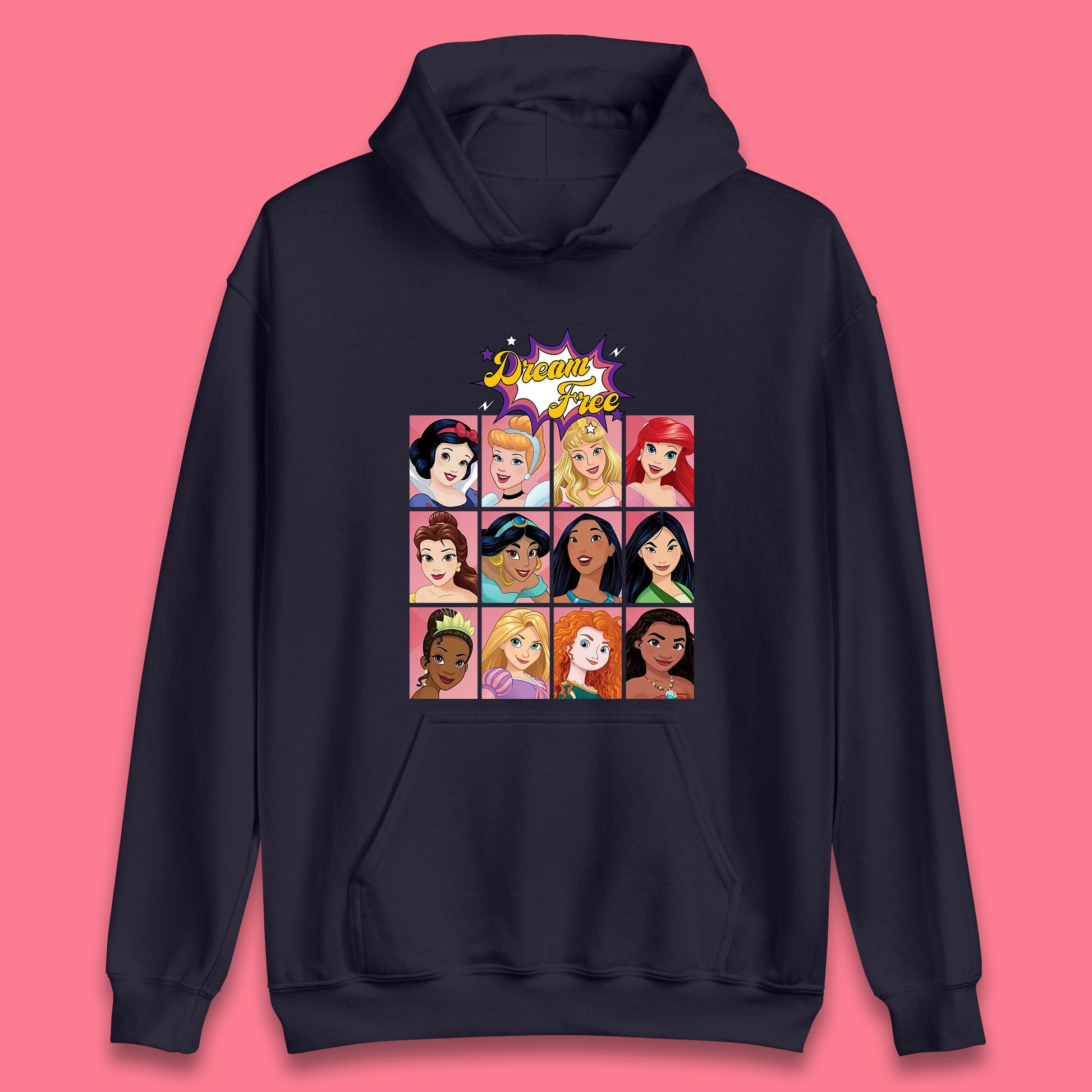 Dream Free Disney Princess Characters Disney Snow White Cinderella Jasmine Disney Princesses Group Disney World Unisex Hoodie