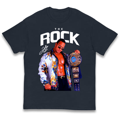 This Rock Kids T Shirt is perfect for young fans of the popular wrestler, Dwayne "The Rock" Johnson. Made with high-quality materials, it offers all-day comfort and durability. Featuring a bold graphic of The Rock, this shirt is sure to be a hit with any fan. Show off your love for The People's Champion in style with this must-have t-shirt.