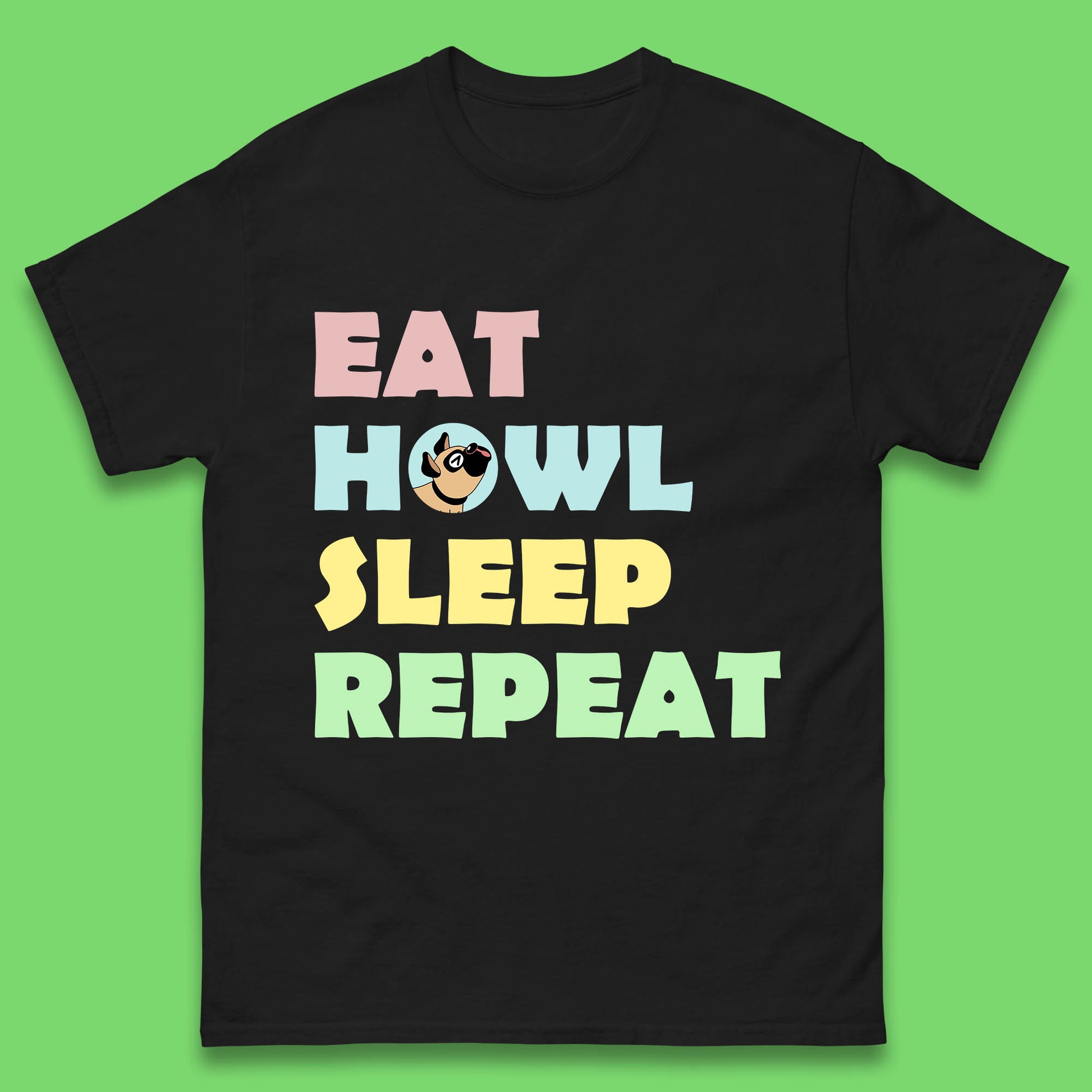 Eat Howl Sleep Repeat Funny Repeat Dogs Lover Dog's Sarcastic Ironic Quote Joke Mens Tee Top