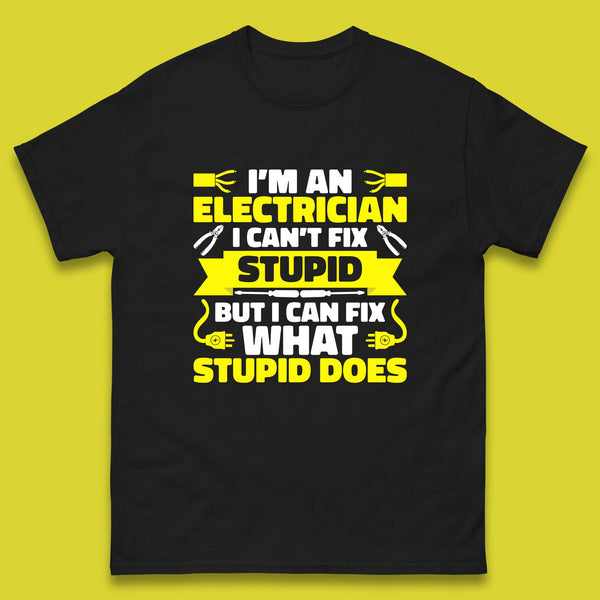 I'm An Electrician I Can't Fix Stupid But I Can Fix What Stupid Does Funny Electrician Novelty Gift Mens Tee Top