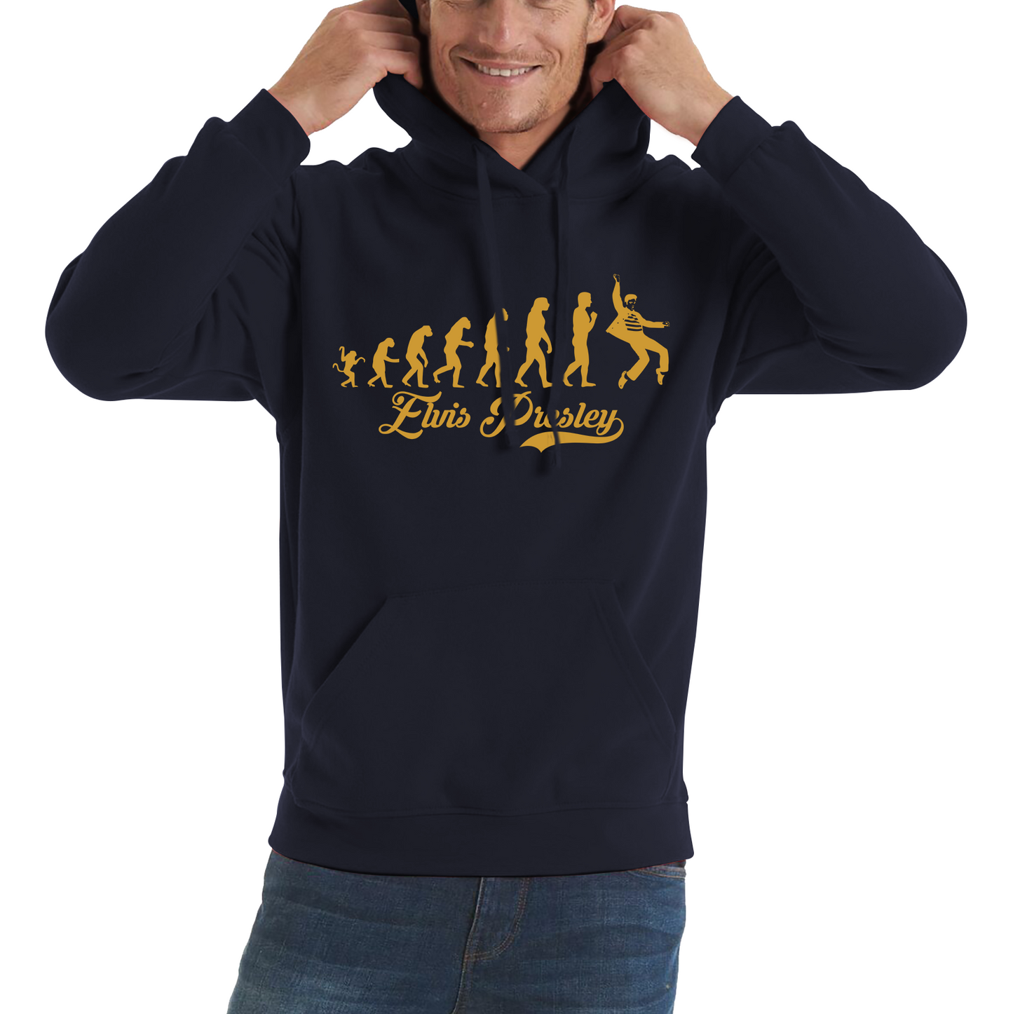 Honor the King of Rock 'n' Roll with this Elvis Presley Human Evolution unisex hoodie. Featuring a unique graphic that blends Elvis Presley’s iconic image with a creative take on human evolution, this hoodie celebrates the lasting impact of one of music’s greatest legends. Made from a soft cotton-poly blend, it offers both warmth and comfort for cooler days or casual wear. The unisex design ensures a relaxed and flattering fit for everyone, making it a standout addition to any Elvis fan’s collection.