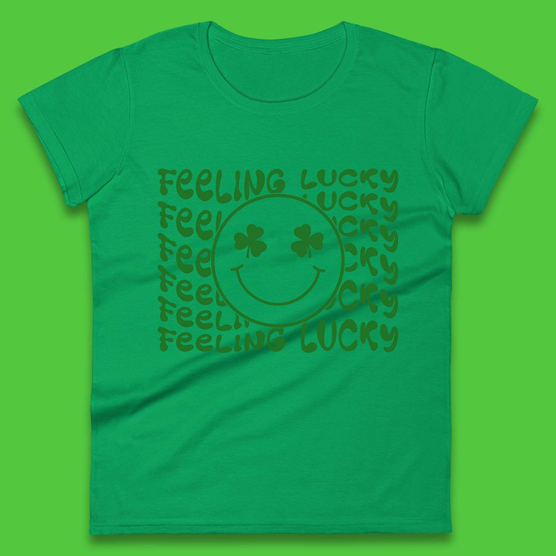 Feeling Lucky Smiley Shamrock Womens T-Shirt