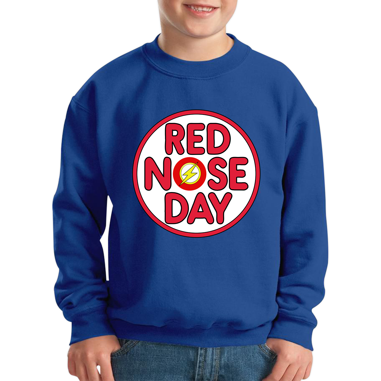 Celebrate Red Nose Day with our "Flash Wally West Red Nose Day" kids' sweatshirt. Designed for young fans of The Flash, this sweatshirt combines cozy comfort with a fun, charitable twist, making it perfect for cooler days and showing support for a meaningful cause.