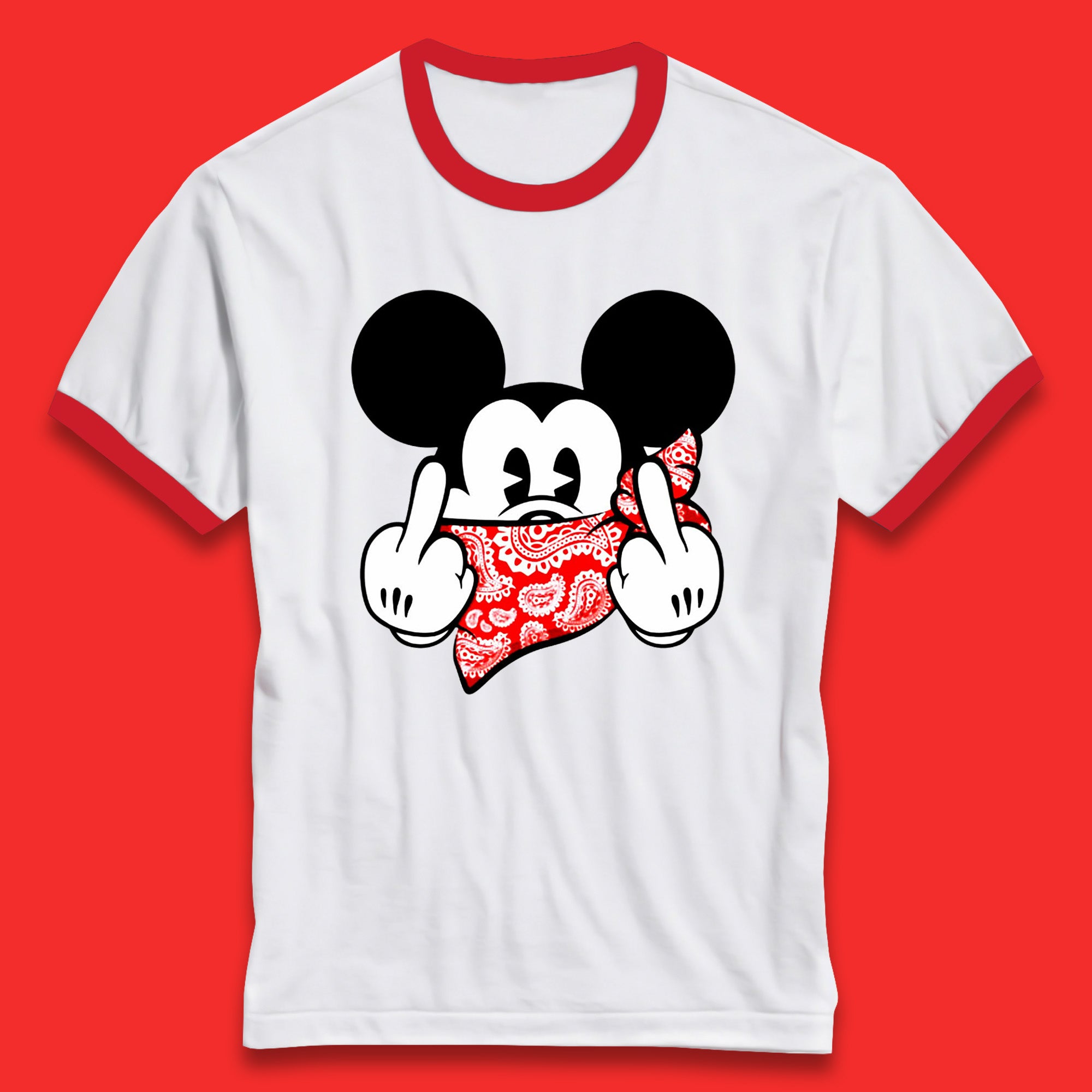 Fuck You Mickey Mouse Middle Fingers Funny Bad Ass Sarcastic Disney Mickey Sarcasm Humor Joke Ringer T Shirt