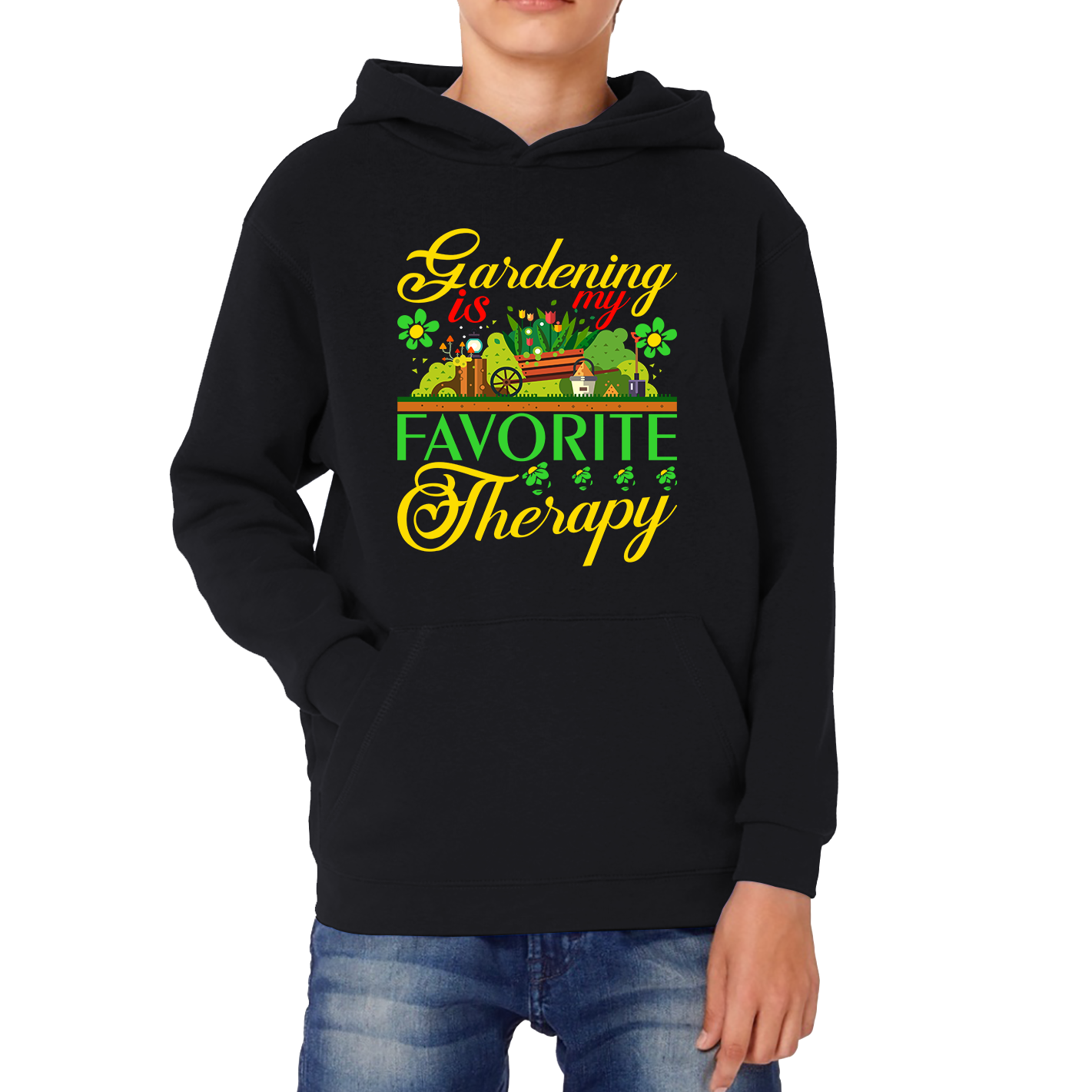 Inspire a love for nature and gardening with the Gardening Is My Favorite Therapy Kids Hoodie. Perfect for young green thumbs, this cozy hoodie combines warmth, comfort, and a message that highlights the calming joys of spending time in the garden.