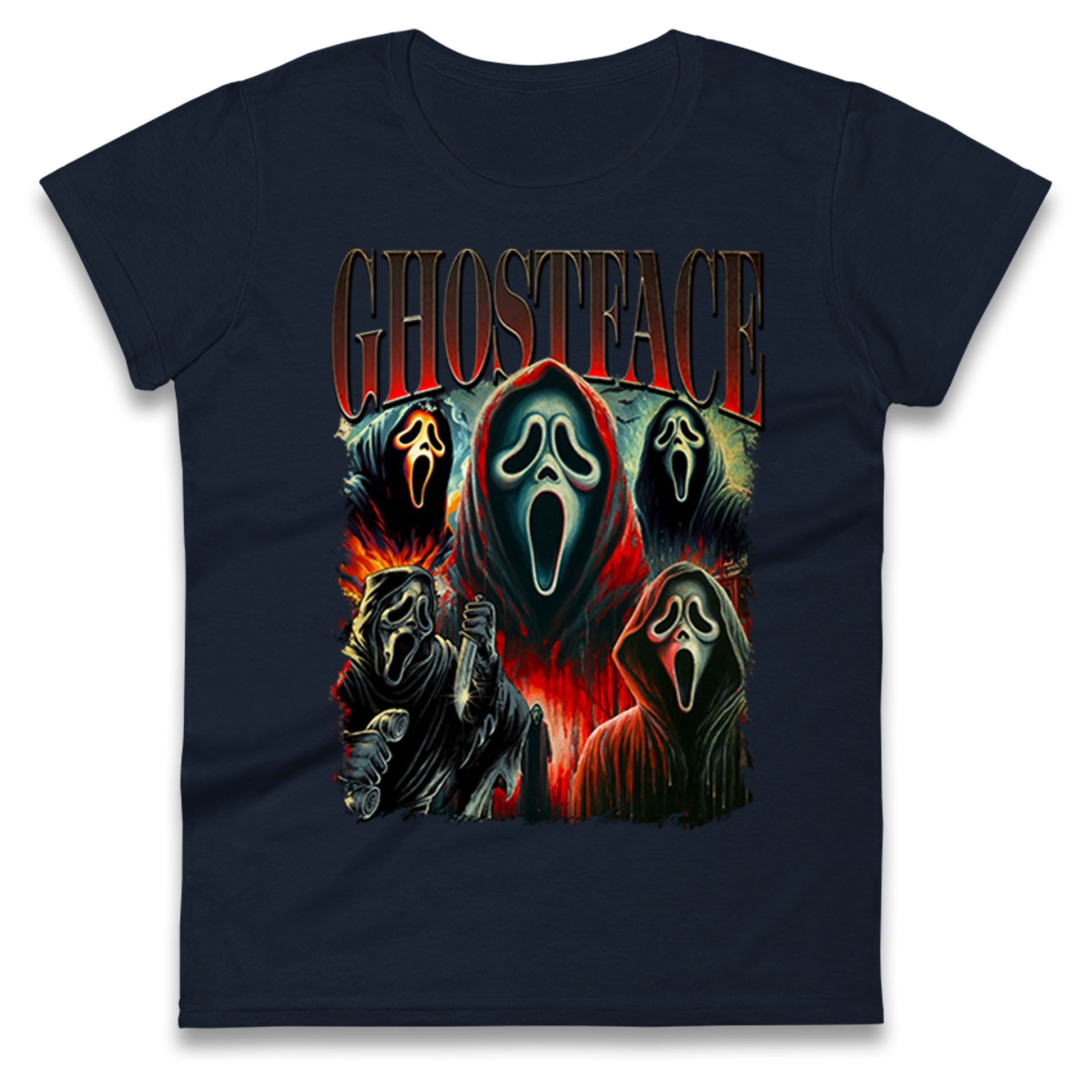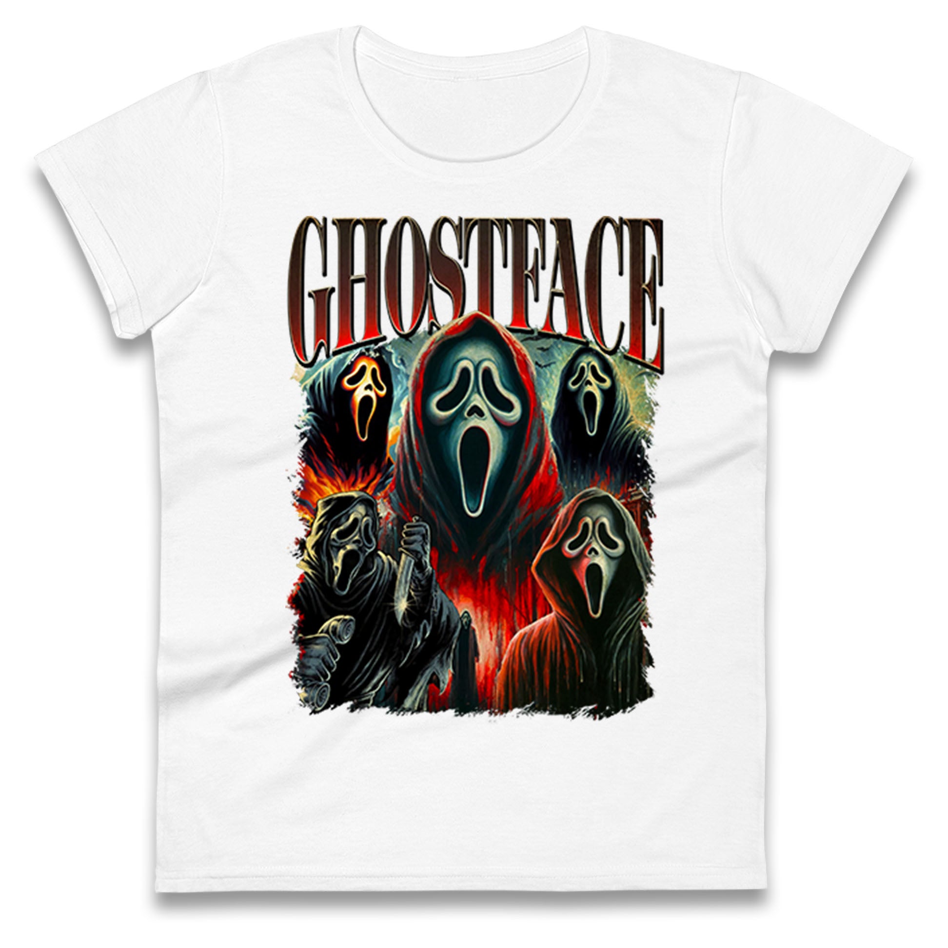 Ghost Face Halloween Bootleg Womens T Shirt